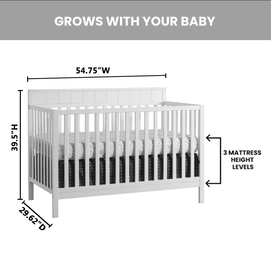 - THOUGHTFUL DESIGN: Designed to fit a standard-size crib mattress, this 4-in-1 Crib offers a convenient design that will grow as your baby grows by converting from a crib to toddler bed, daybed and full-size bed with 3-levels of mattress height adjustments