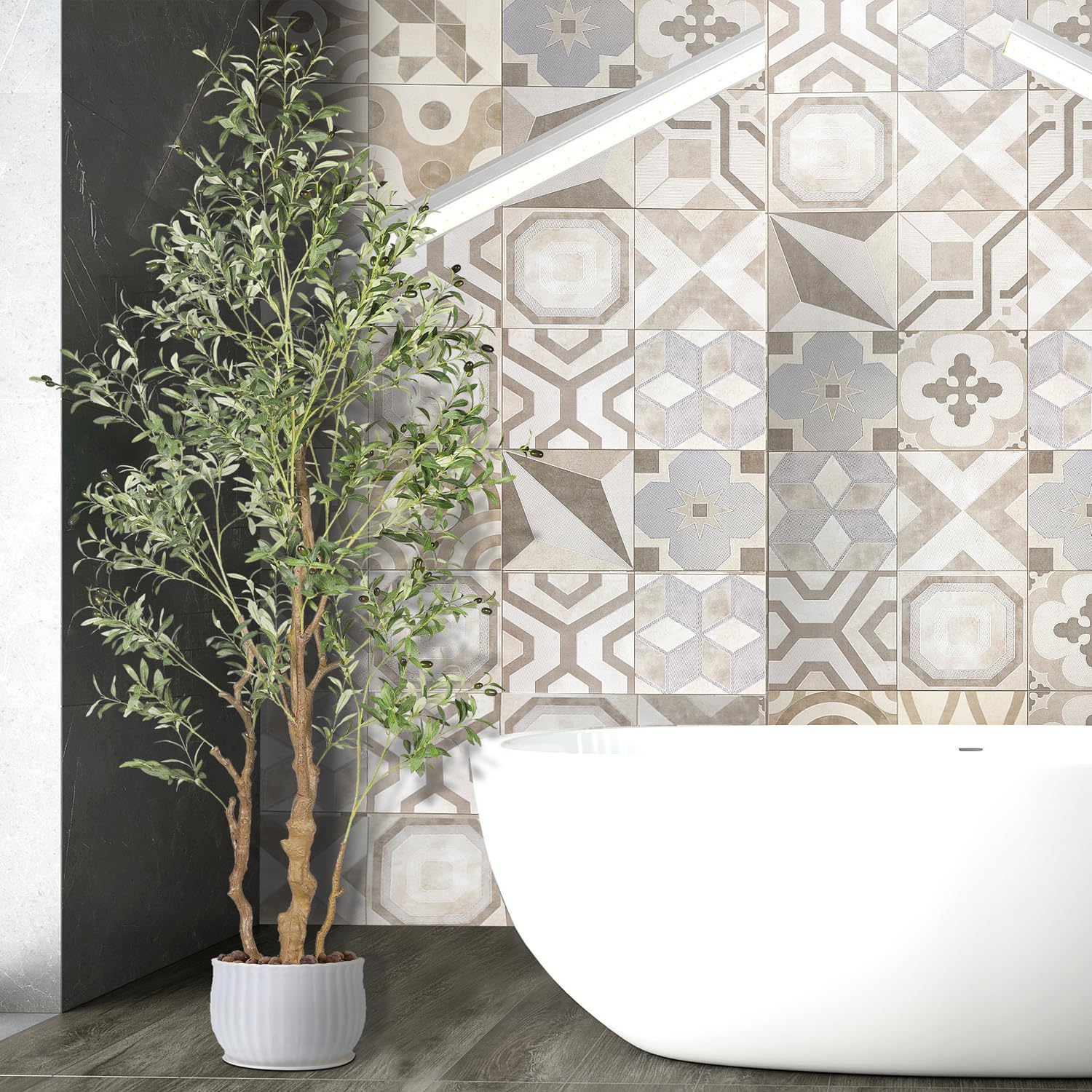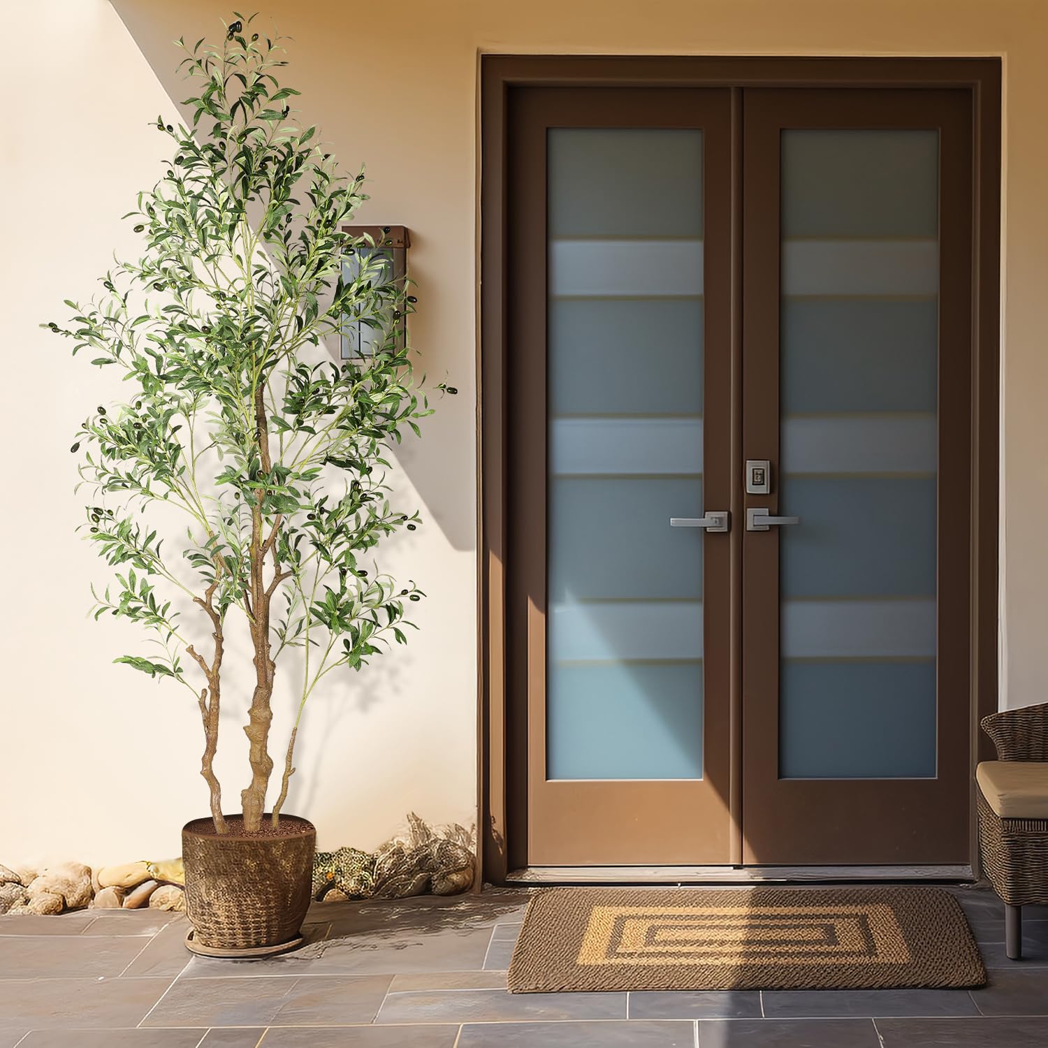 - BEST DECORATIONS Carefully crafted to mimic the appearance of a real-life Artificial Olive Tree, looking as close to reality as possible, perfect for any room or office and outdoor decor, this fake olive tree will let you feel the presence of nature . All seasons are green. Perfect housewarming gift.
