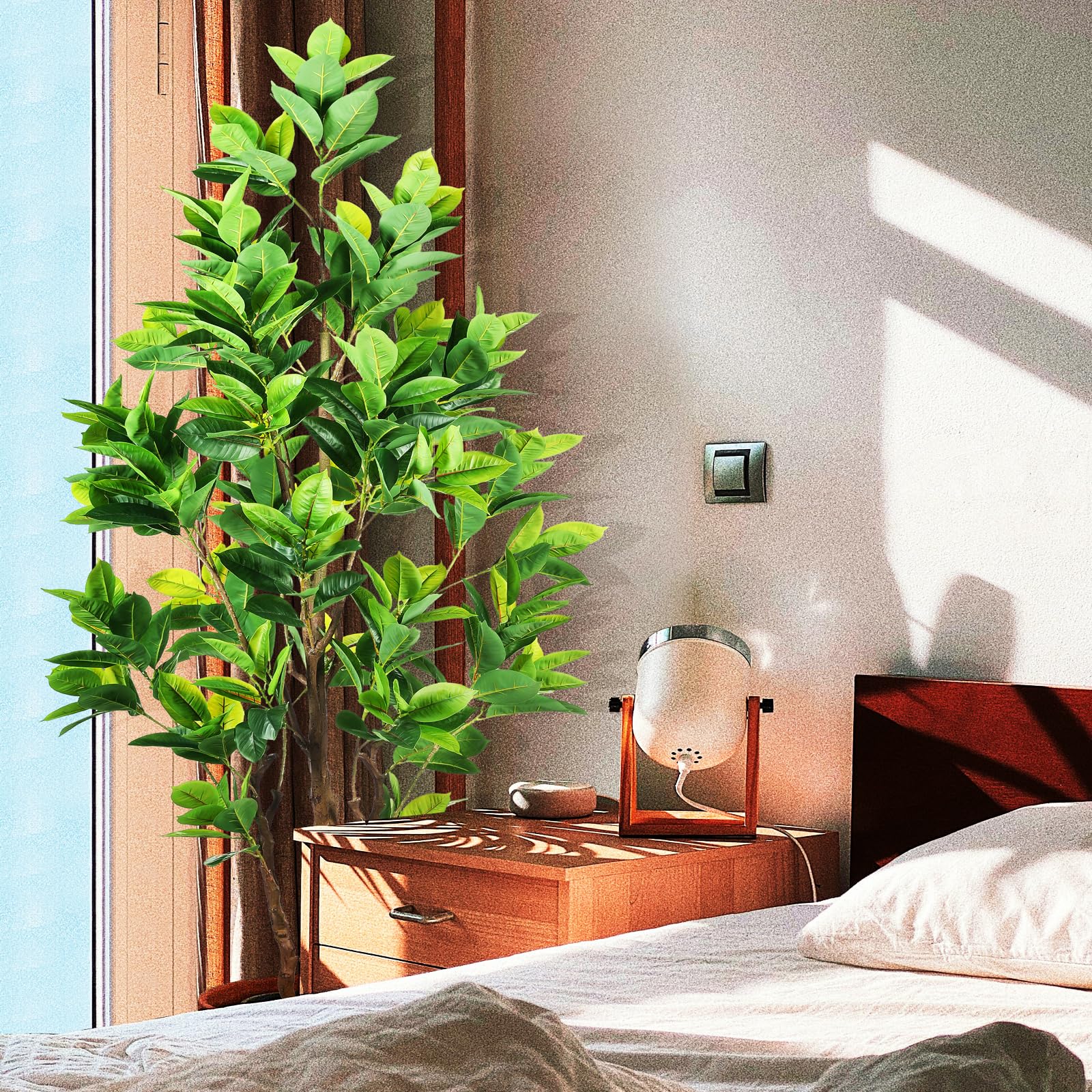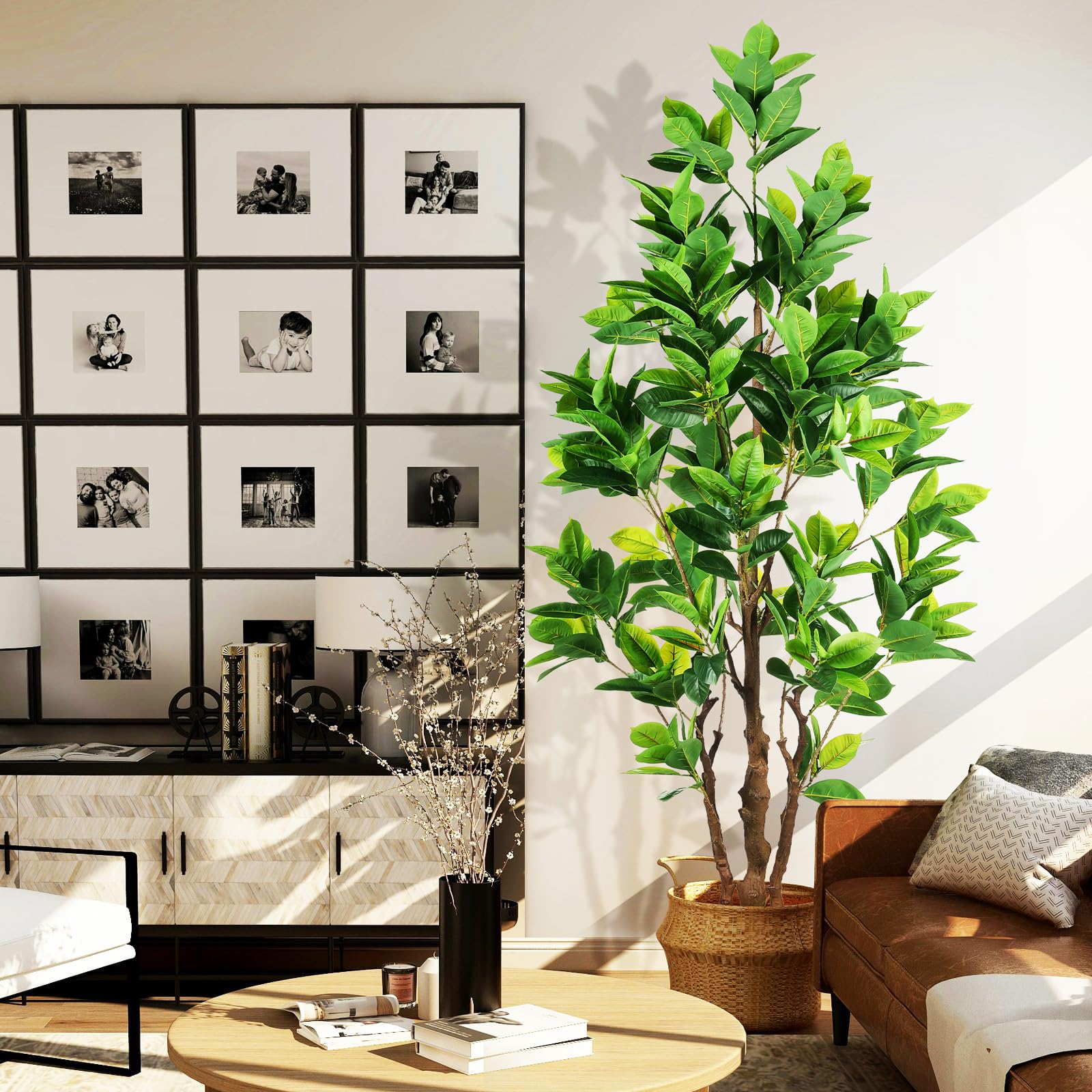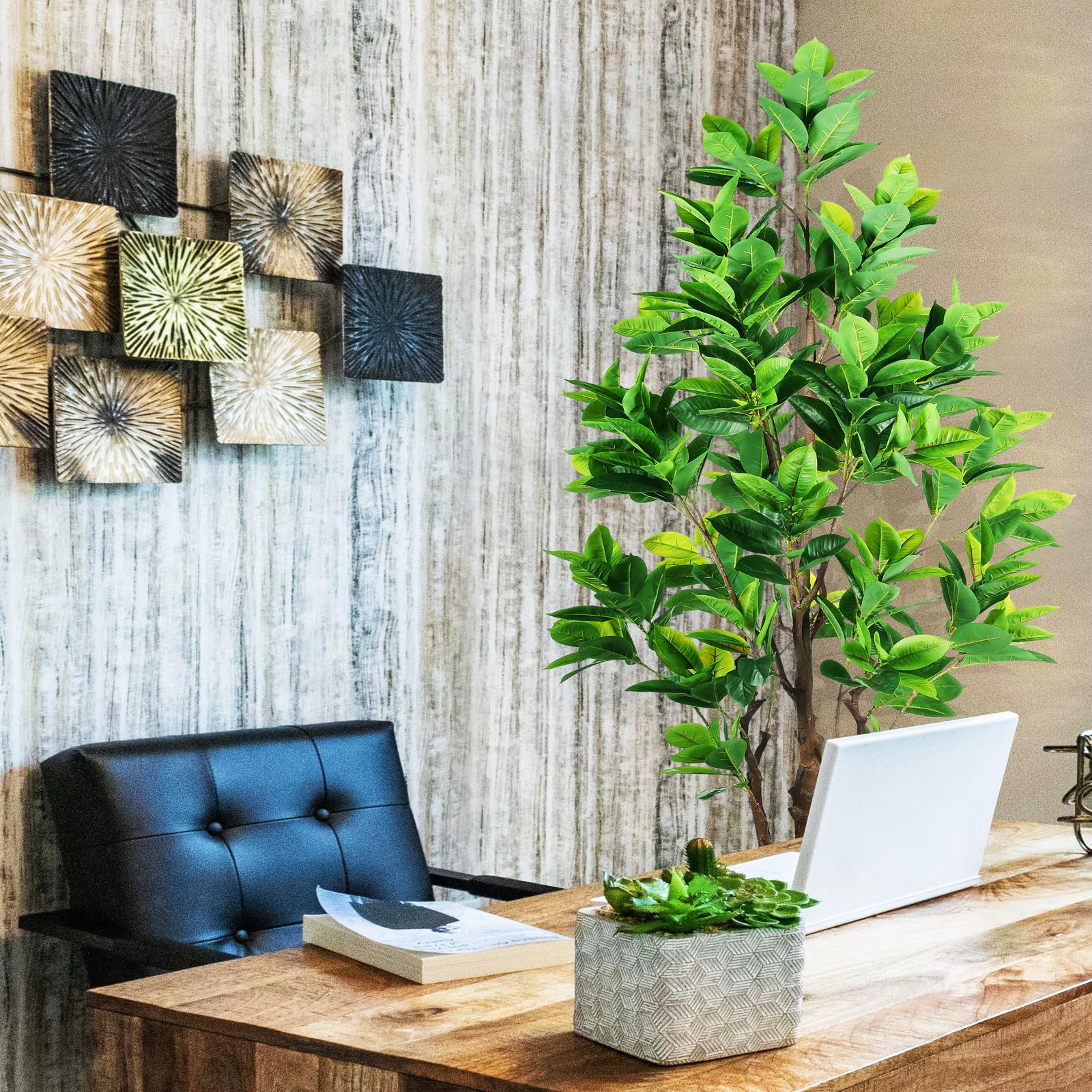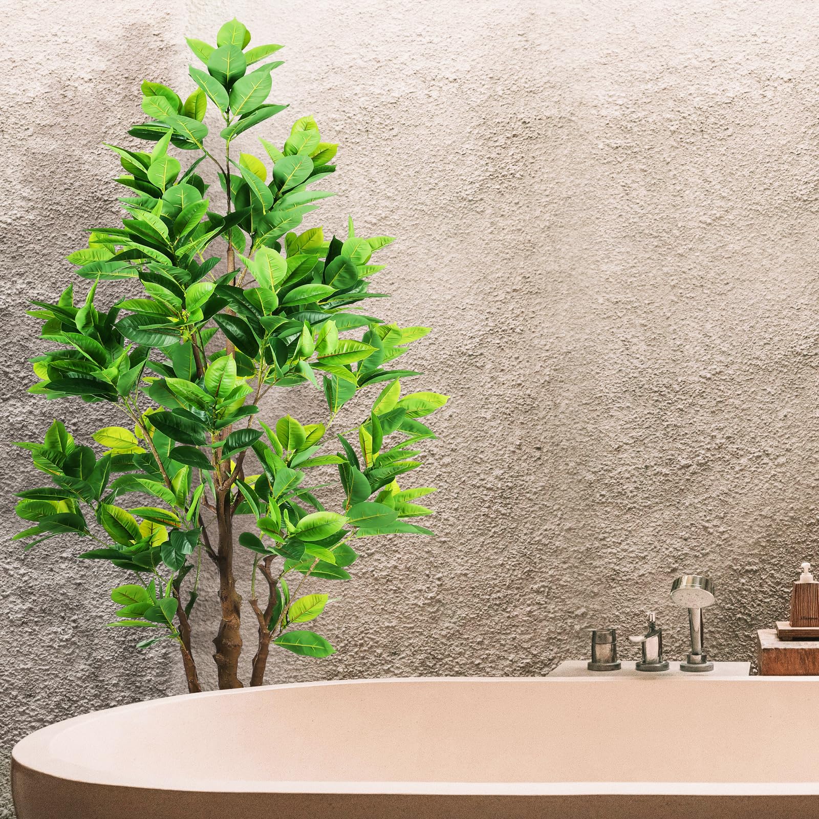 - Carefully crafted to mimic the appearance of a real-life Artificial Rubber Tree, looking as close to reality as possible, perfect for any room or office and outdoor decor, this fake rubber tree will let you feel the presence of nature . All seasons are green. Perfect housewarming gift.