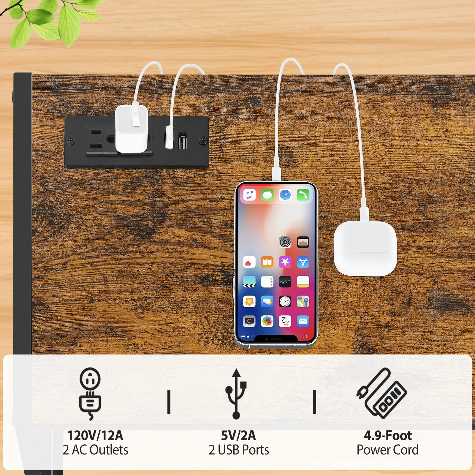 - Behind Sofa Table With Outlets Say goodbye to outlet shortage. OYEAL slim behind couch table provides 2 AC outlets, 2 USB ports, and a 4.9-foot extension power cord to meet the basic charging needs of your phones, desk lamps, laptops, etc.