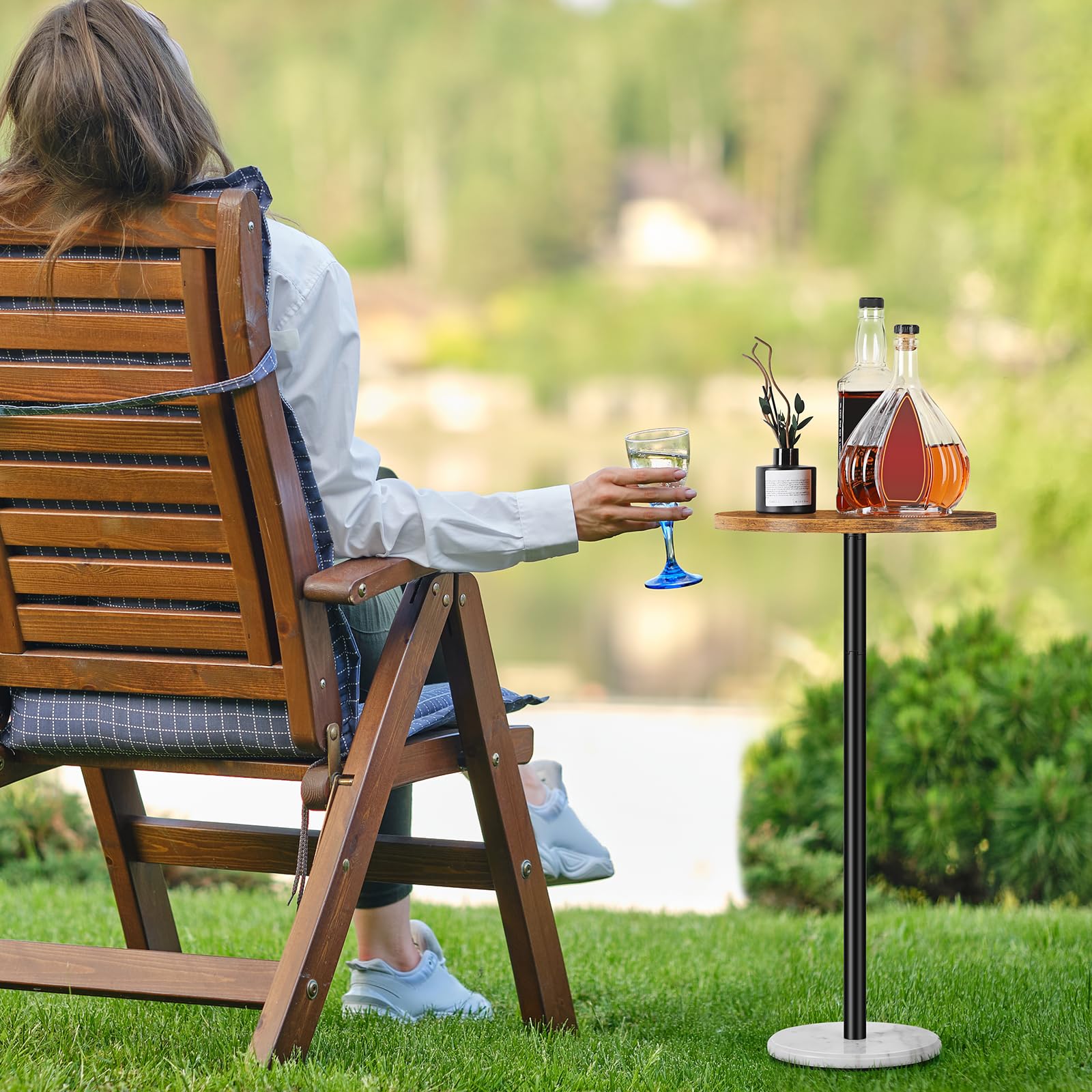 - Crafted from premium MDF board and marble material, our patio drink table is sturdy, stable, and blends enduring durability. Whether displayed in an indoor setting or on an outdoor patio, the small cocktail table promises longevity and timeless charm.
