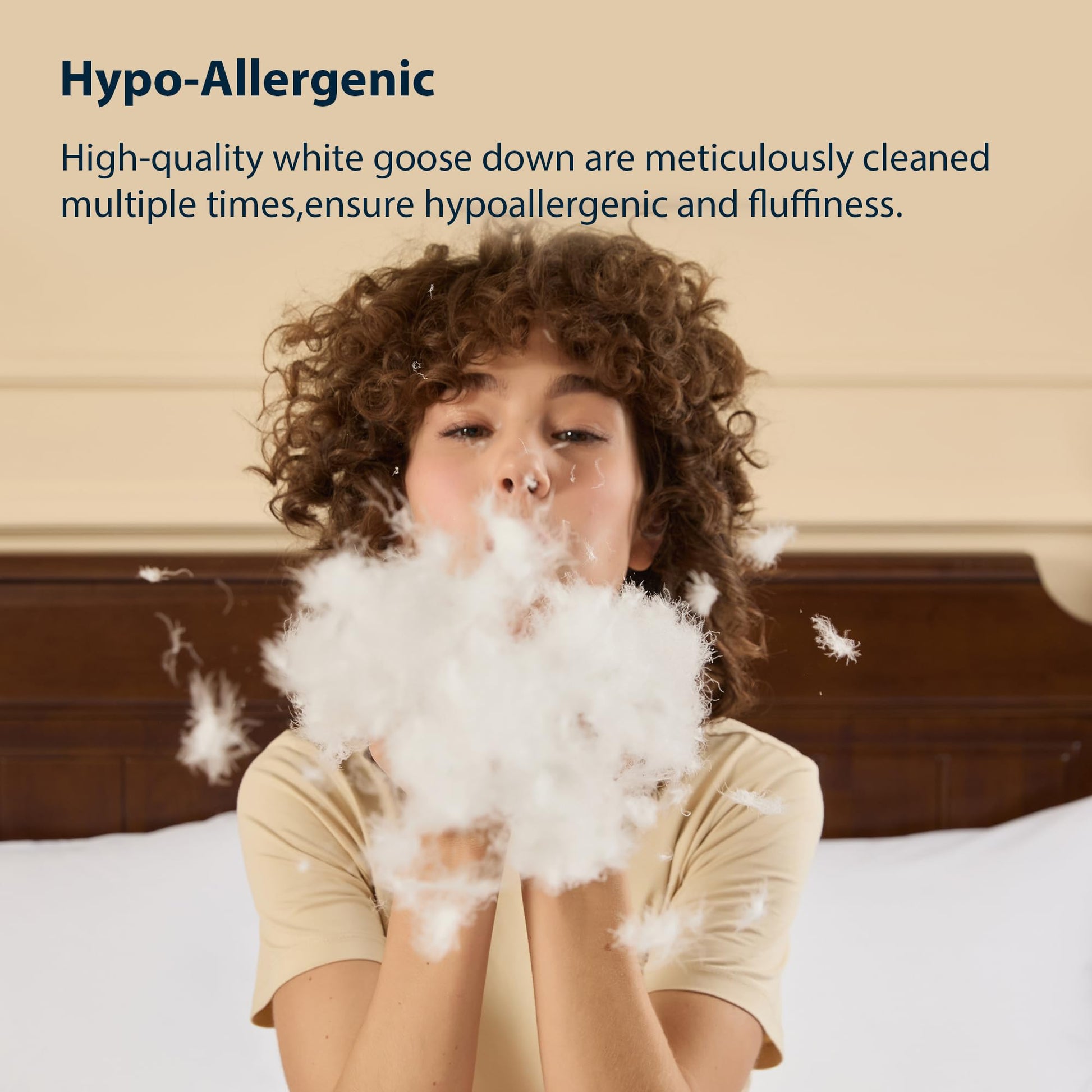 - Hypo-Allergenic: One of the most important and expensive components of our luxury down bedding is the cleaning process. Our bed pillow's down is ethically sourced and certified by RDS and OEKO-TEX Standard 100 and multiple washed to guarantee a cleaner, longer-lasting loft.