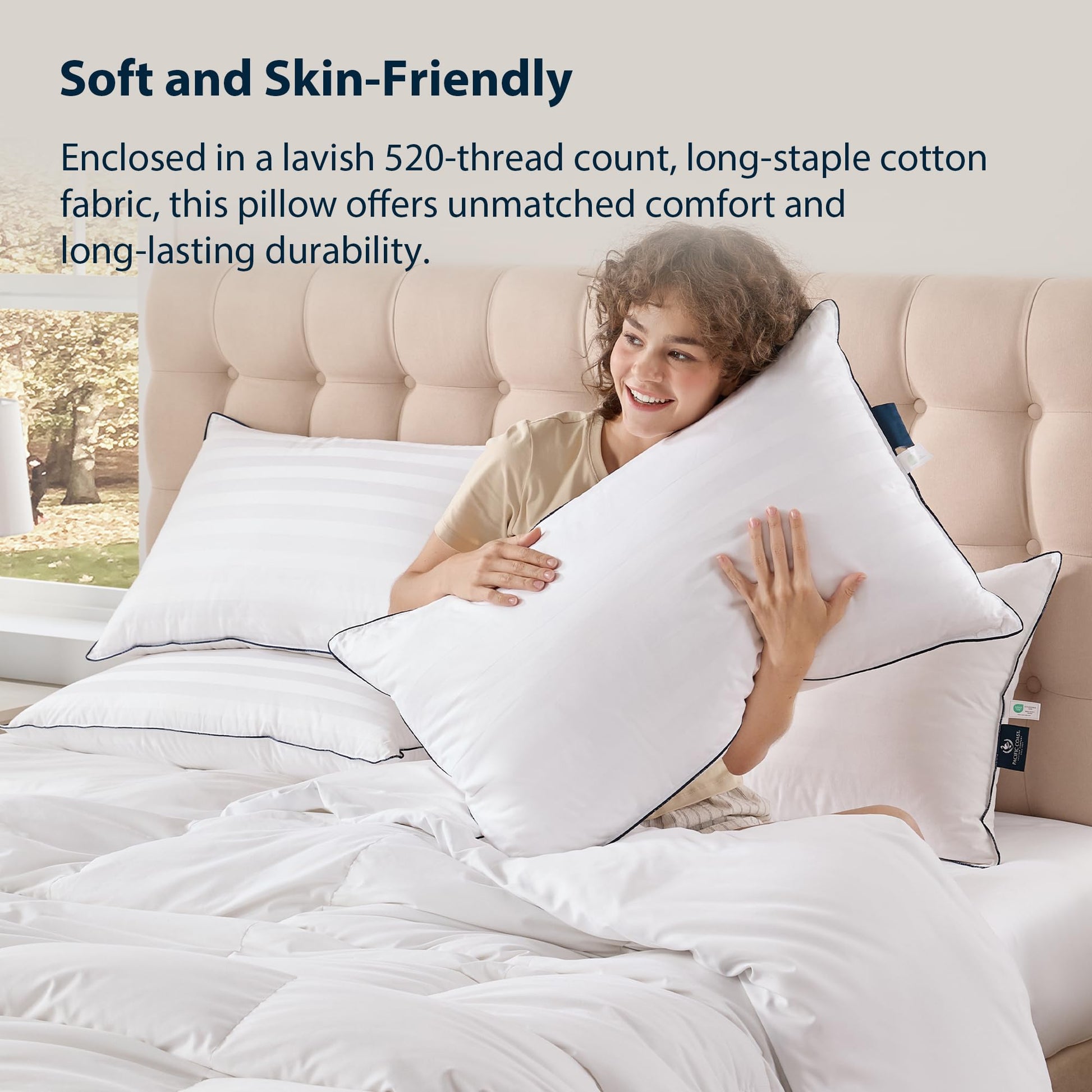 - Soft, Breathable and Skin-Friendly: We created a naturally down-proof fabric without the traditional use of other coating by precisely weaving the highest-quality cotton threads. Enclosed in a lavish 520-thread count, long-staple cotton fabric, this bed pillow offers unmatched comfort and long-lasting durability. It also offers an exceptionally soft touch and moisture-wicking.