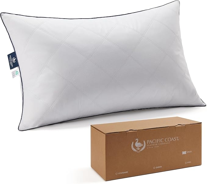 - Soft, Breathable and Skin-Friendly: We created a naturally down-proof fabric without the traditional use of other coating by precisely weaving the highest-quality cotton threads. Pacific Coast bed pillow also offers an exceptionally soft touch and moisture-wicking, ensuring a cozy and restful sleep.