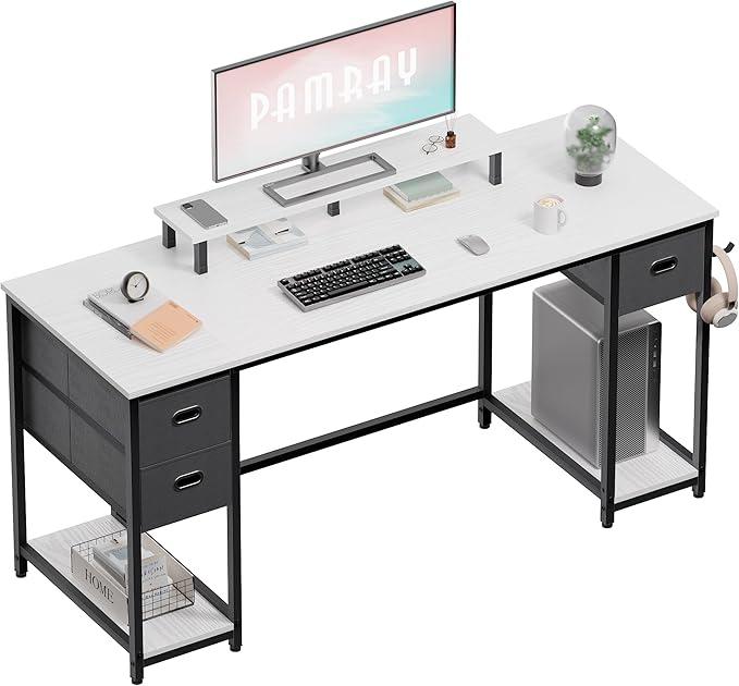 - Computer Desk with Monitor Stand -- This computer desk with a monitor stand allows you to adjust the height of your monitor, enhancing visibility and work comfort. It can boost your work efficiency and help maintain correct posture while working.