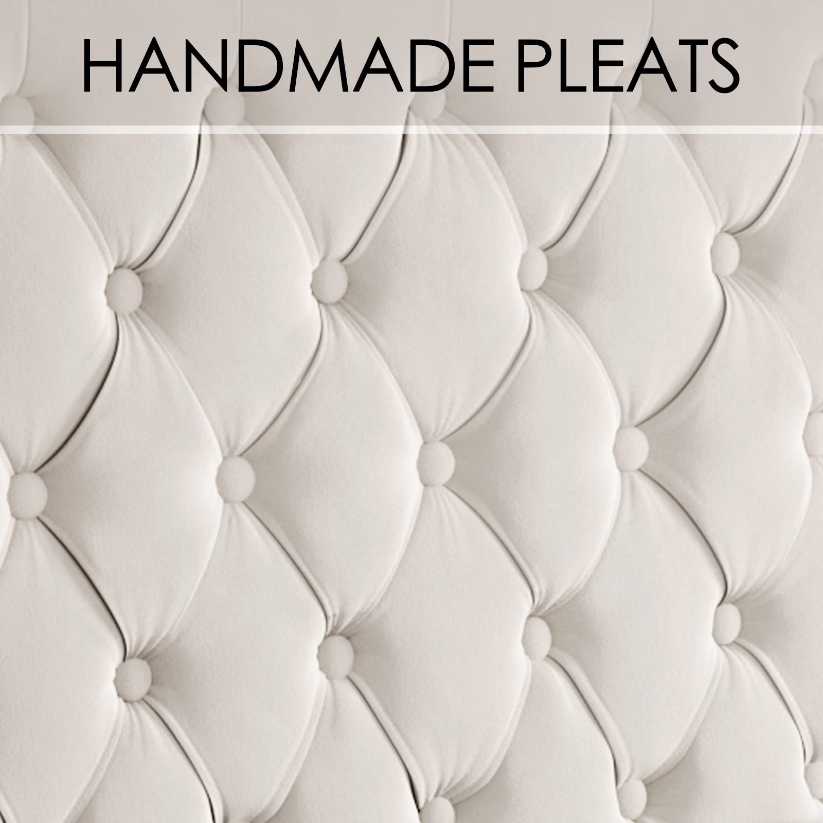 - Handmade Headboard Design Fully handcrafted headboard with double pleats & deep buttons, extra comfort & enjoyment. Velvet give bed frame a soft touch and make it durable great permeability.