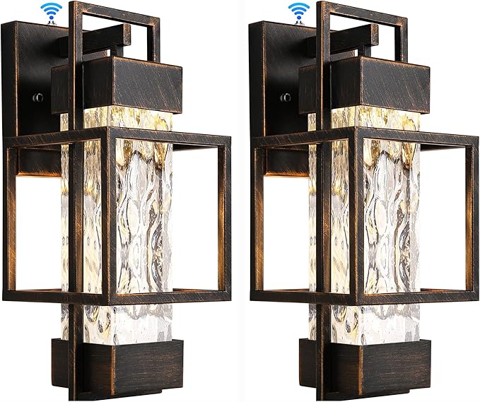 - Bubble water glass: this exterior wall lantern is designed with water-seeded glass that disperses the light evenly to make an eye-caring soft and beautiful shadow for your outdoor house.