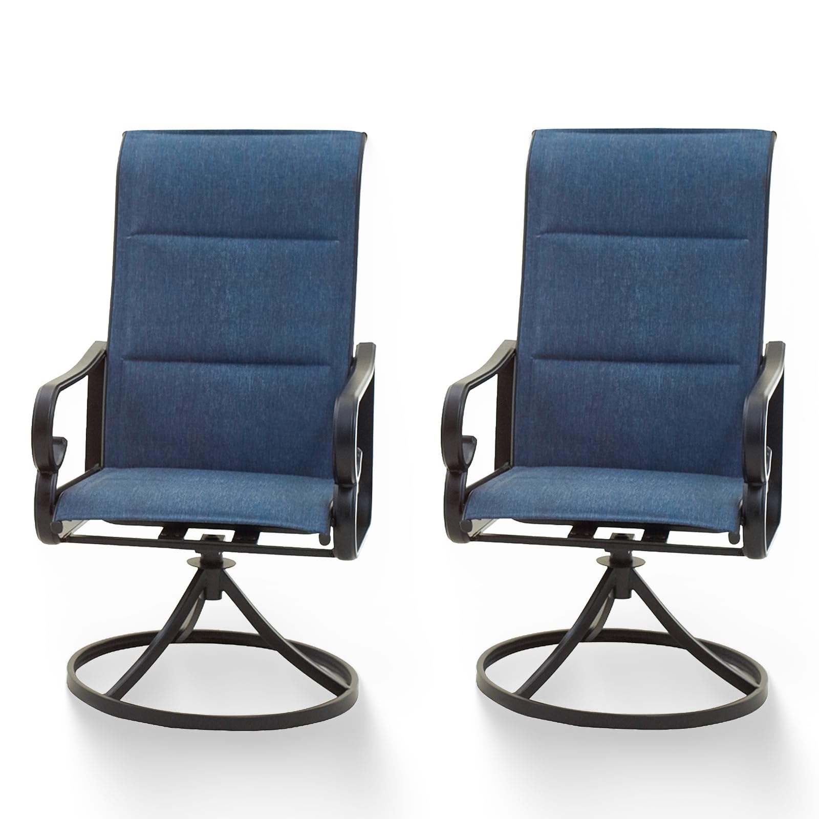 - WEATHER-RESISTANT MATERIAL: Heavy duty galvanized steel frame, rust-resistant and weather-resistant. Breathable textilene fabric filled with sponges, padded chairs will bring you ultimate seating comfort. Big weight capacity for long-lasting use. Whether you're relaxing in your courtyard, enjoying the view from your patio, or lounging by the pool, these patio swivel chairs provide comfort and durability.