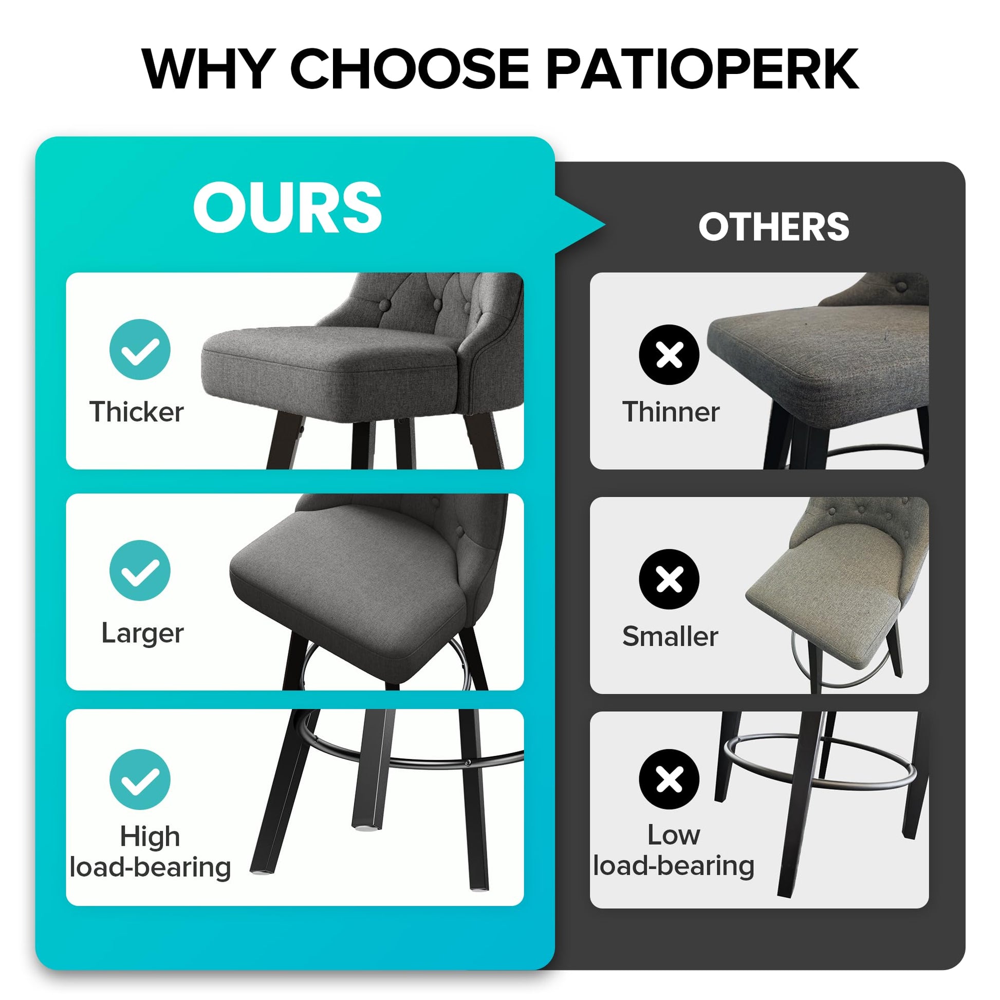 - Ultimate Comfort Our bar stools feature high-density foam cushioning for an ultimate comfortable seating experience. The elasticity of the cushion ensures long-term use without deformation.