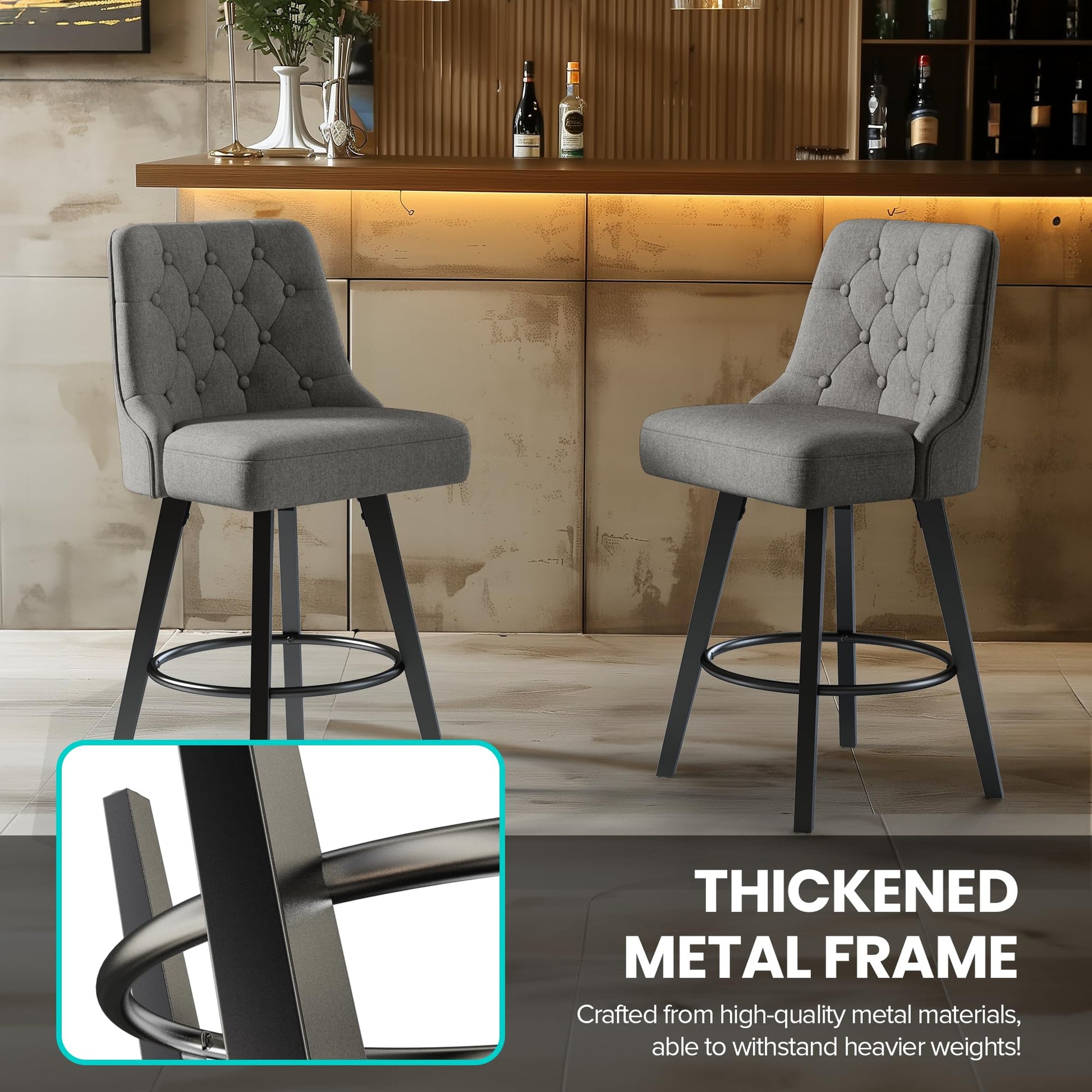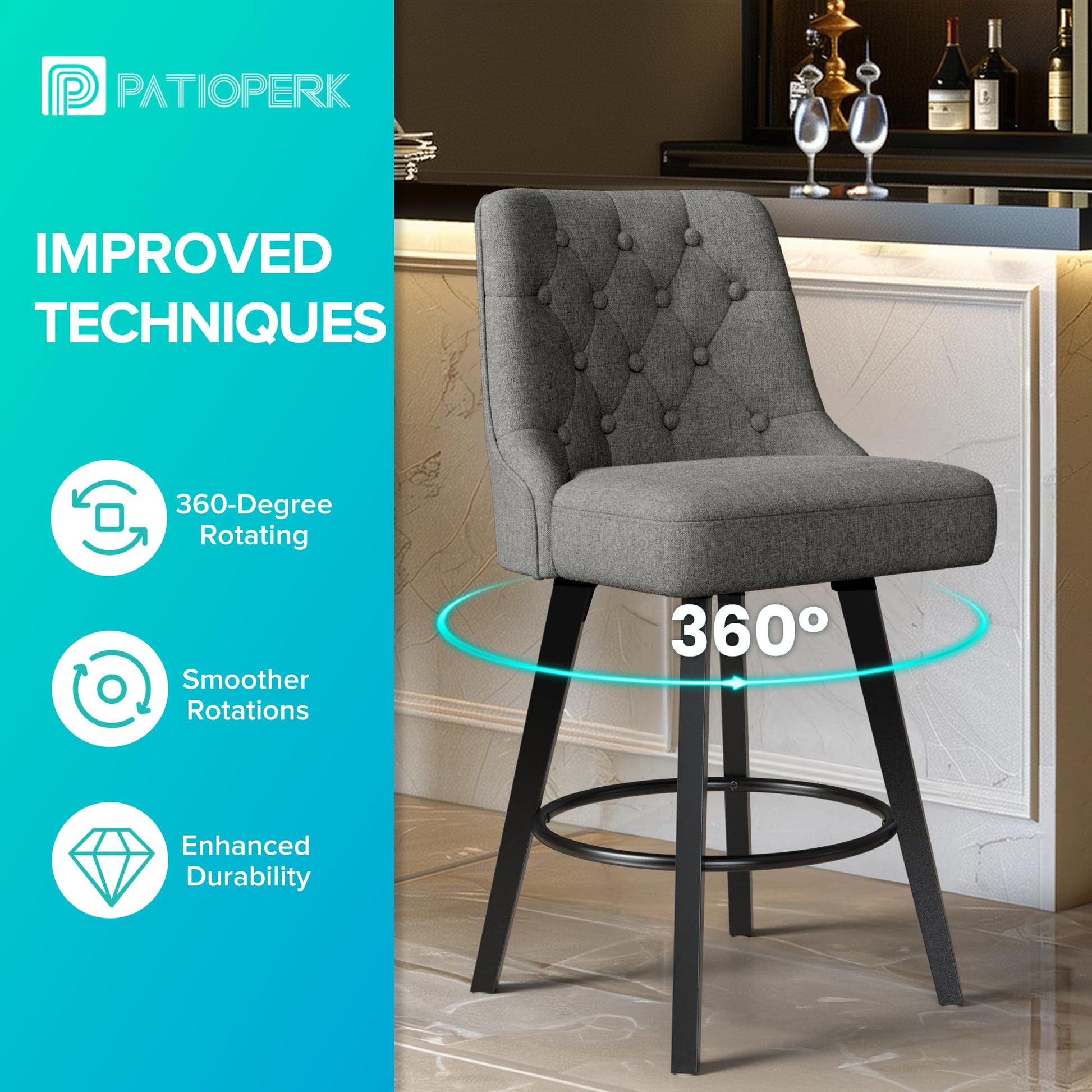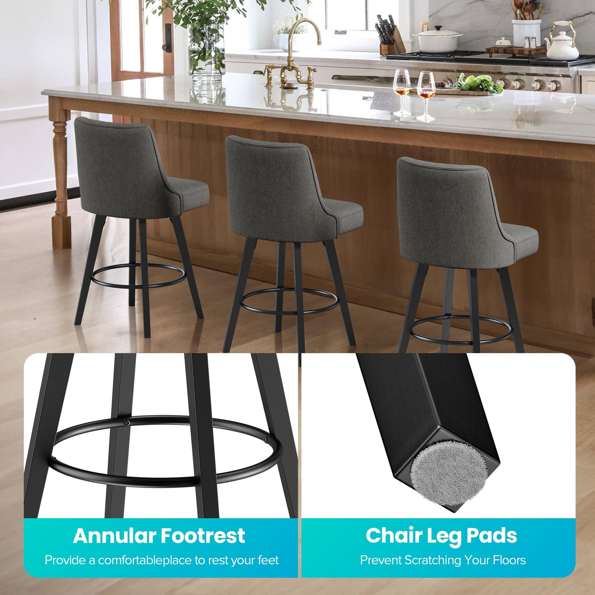 - Adjustable Design Our barstools set adopts 360° rotating seats, facilitating you to fetch things or chat with others without standing up, turning around or moving frequently. Create a comfortable experience for you, your family, or your friends.