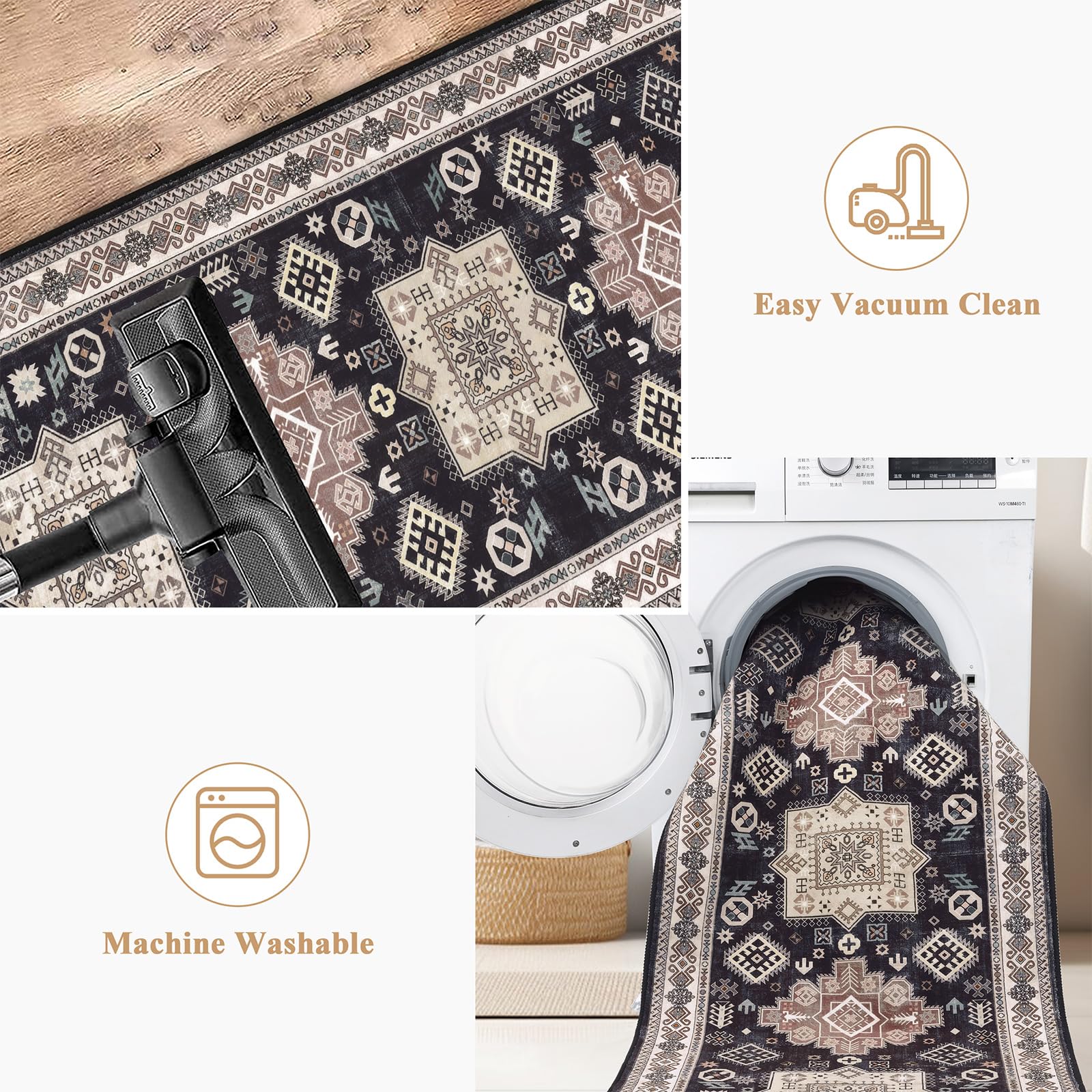 - Easy To Care Washable Rug: Vacuum cleaners can be used regularly for daily cleaning to prevent dust and debris from entering the fibers. You can also use a washing machine and dryer or hand wash for deep cleaning. When washing by hand, you only need to clean the wet sponge with detergent, then gently wipe the carpet, and finally, rinse with the sponge.
