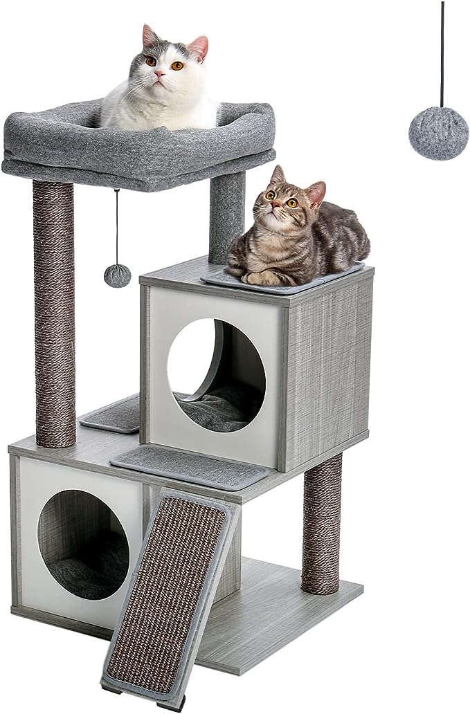- HEALTY AND FUN: Full-wrapped with natural sisal,the scratching post will completely satisfy their instinct of scratching and keep their claws from your expensive furniture! The ramp covered with a sisal mat not only aids the cat to the upper level but also increases the scratching experience.