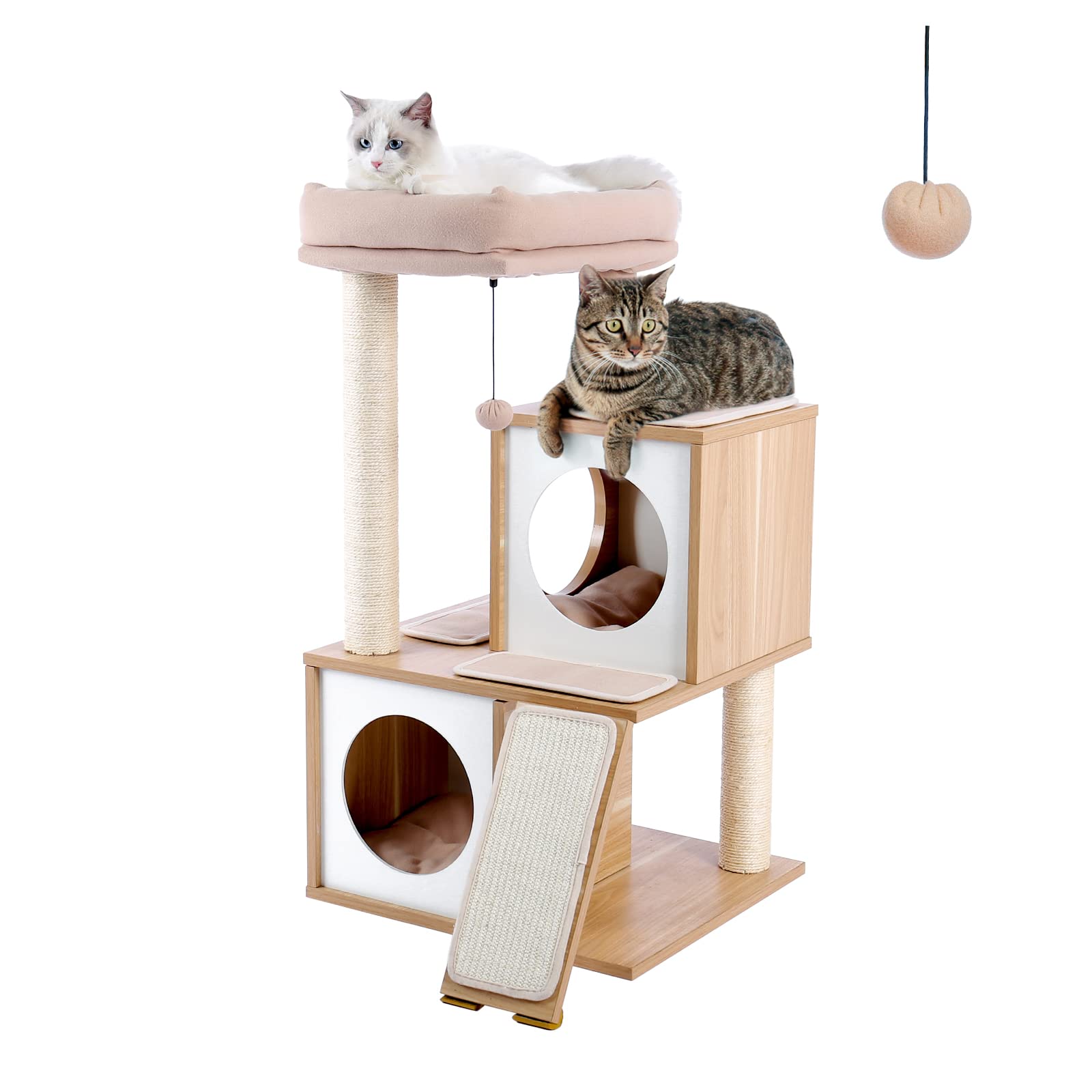 Cat Tree 35 Inches Wooden Cat Tower with Double Condos