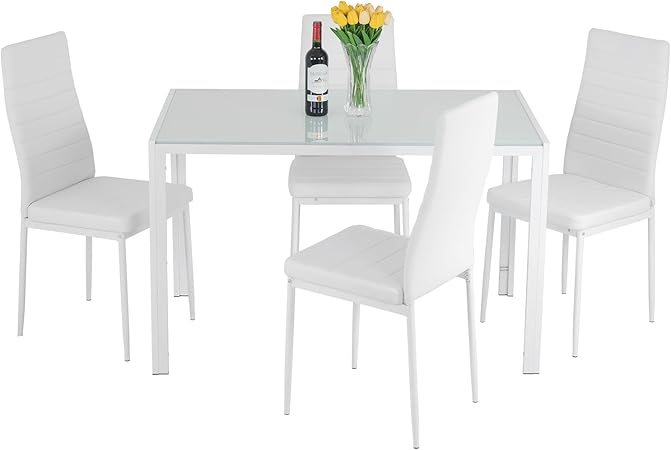 - The improved of the thickness of the glass of the dining table to make the Dining Table Set more resistant to daily use scratches.glass tabletop allows for the easiest cleanup possible; simply wipe them up in just seconds!Easy to clean of the dining room table set.