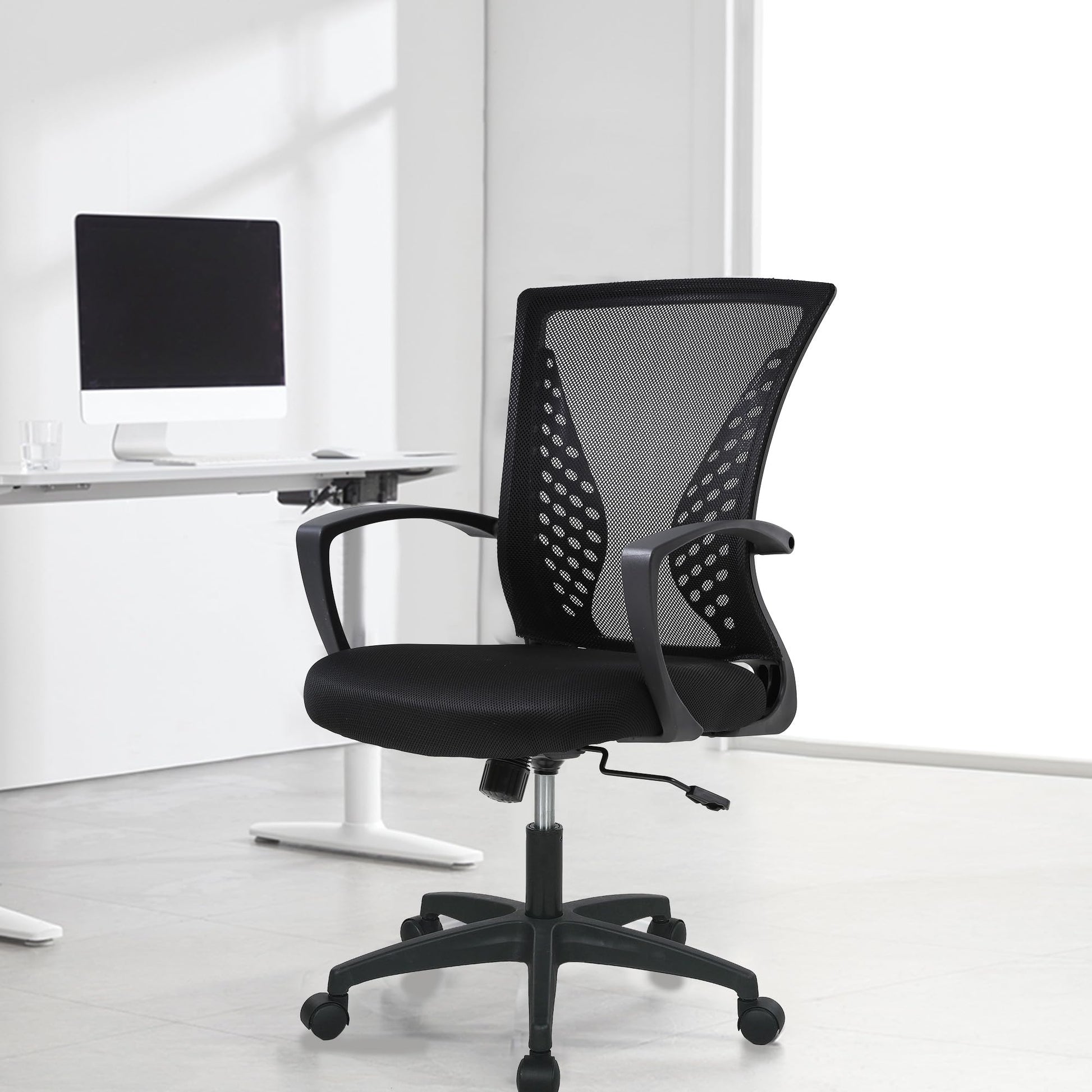 Office Chair Desk Chair Computer Chair Ergonomic Chair Adjustable Executive Mesh Mid Back with 360 Degree Swivel Wheels Lumbar Support Armrest (Black)