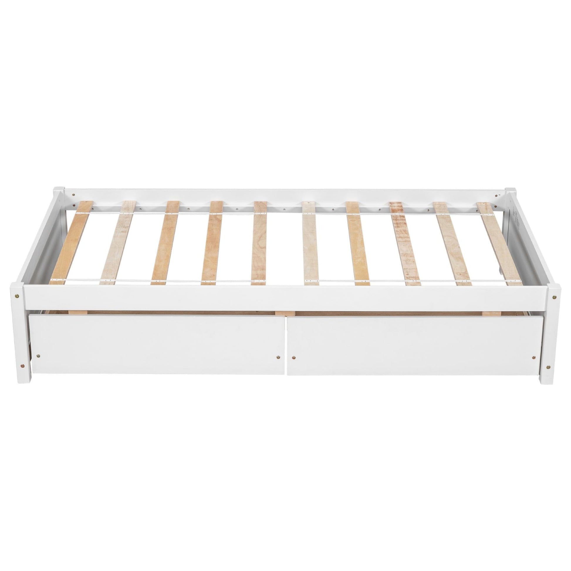 Twin Bed Frame with 2 Drawers, Solid Wood Construction