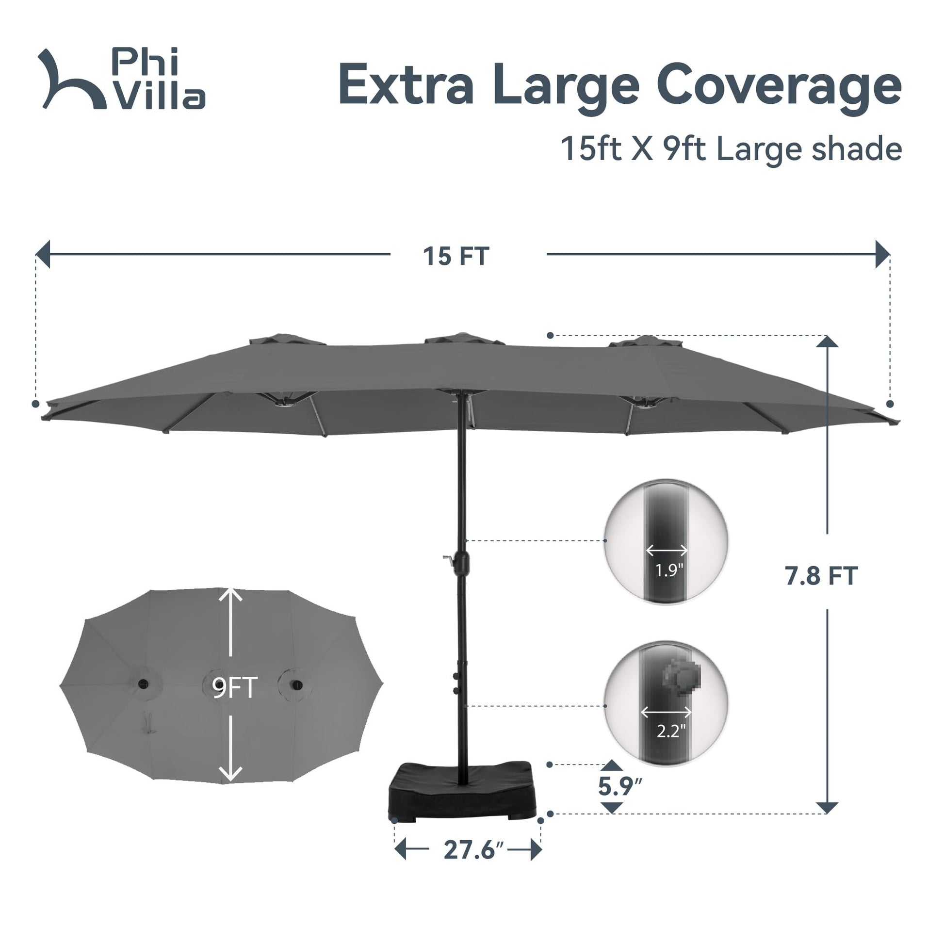 15ft Large Patio Umbrellas with Base, Outdoor Double-Sided Rectangle Market Umbrella for Pool Lawn Garden,
