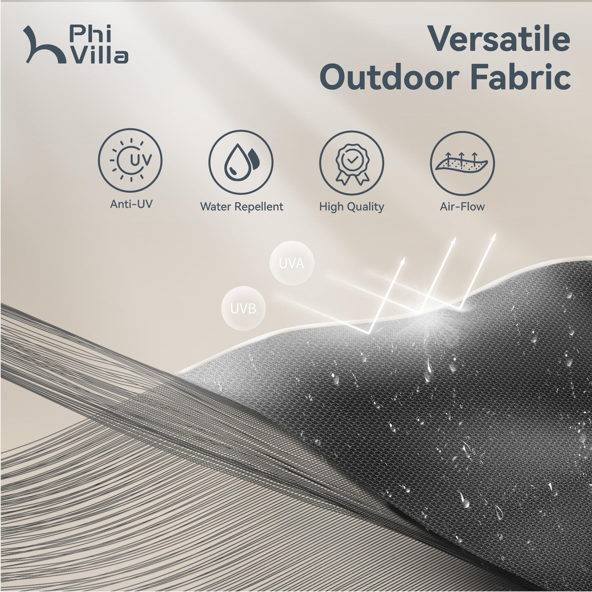 - 100% Polyester Canopy: PHI VILLA double sided outdoor umbrellas canopy are made of 100% polyester fabric that can be waterproof, breathable, long lasting, fade resistant, UV protective and easy to clean