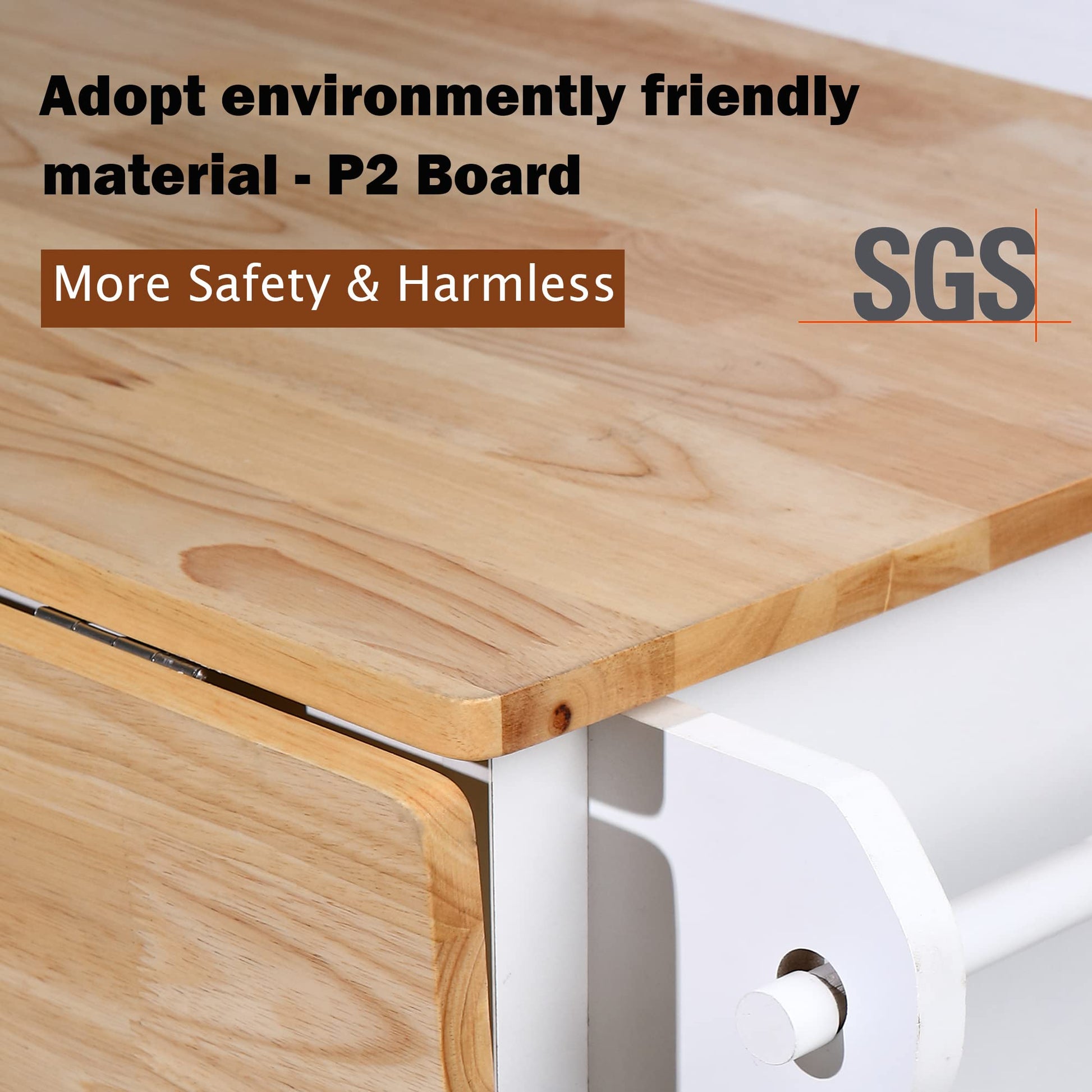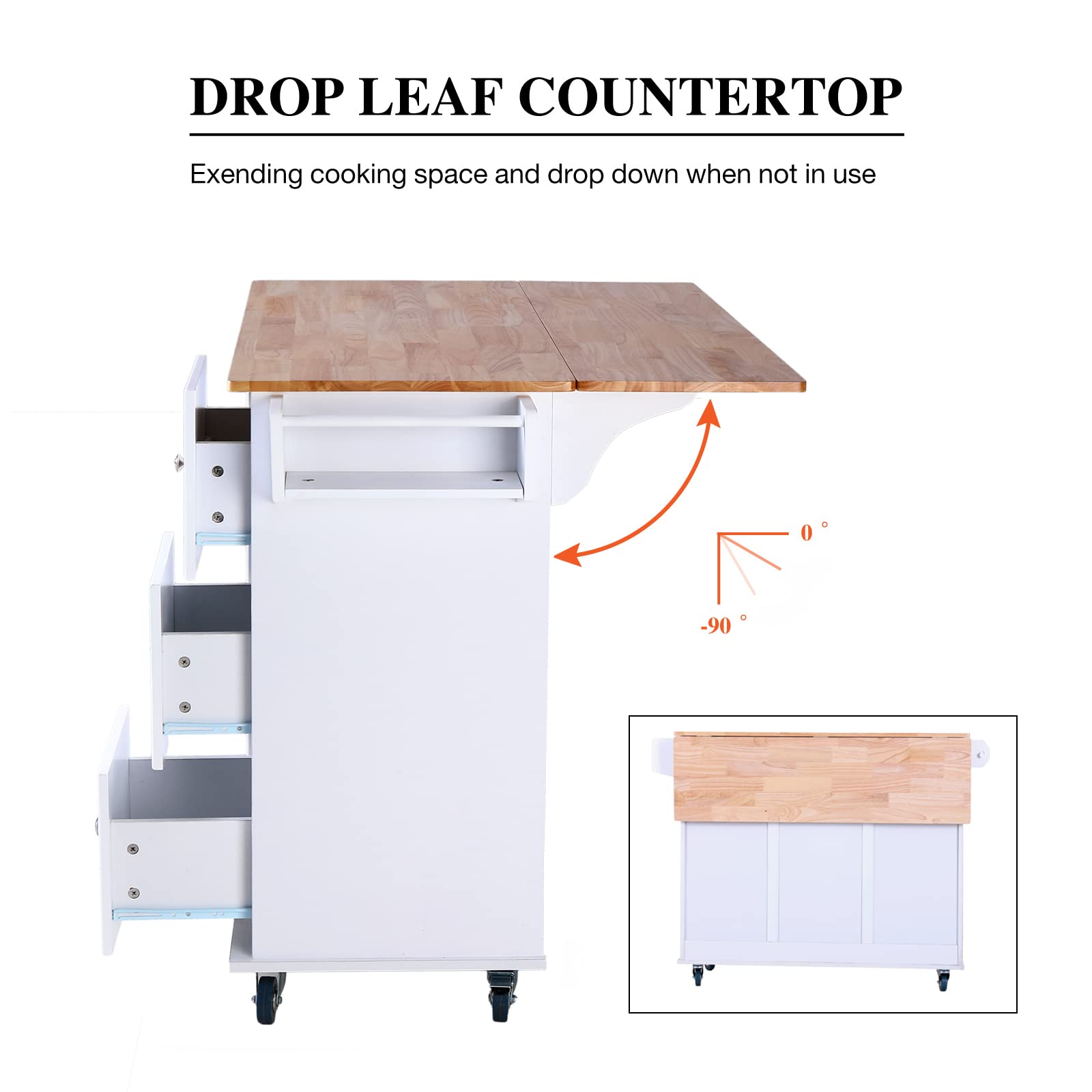 - Kitchen Island with Drop Leaf - When you have an island with a drop leaf, you'll be able to fold the leaf up and put stools underneath for seating or fold it down when you need to save space. This kitchen cart has a varnished rubberwood drop leaf tabletop, made from high-quality rubber wood and MDF, sturdy & durable and Long-Lasting