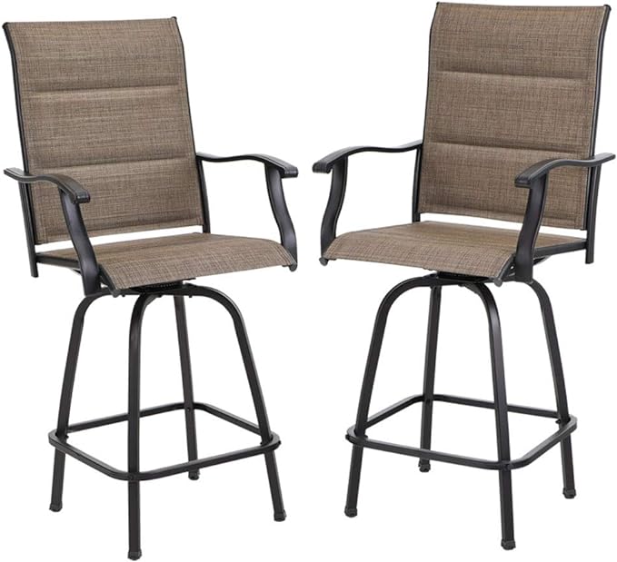- Comfortable Swivel Patio Chair: Enjoy the comfort of the swivel outdoor chair with its ergonomic chair back, armrests, and slightly tilted seat design. Each patio swivel bar stool is upgraded with an adjusting knob to ensure even legs when assembled