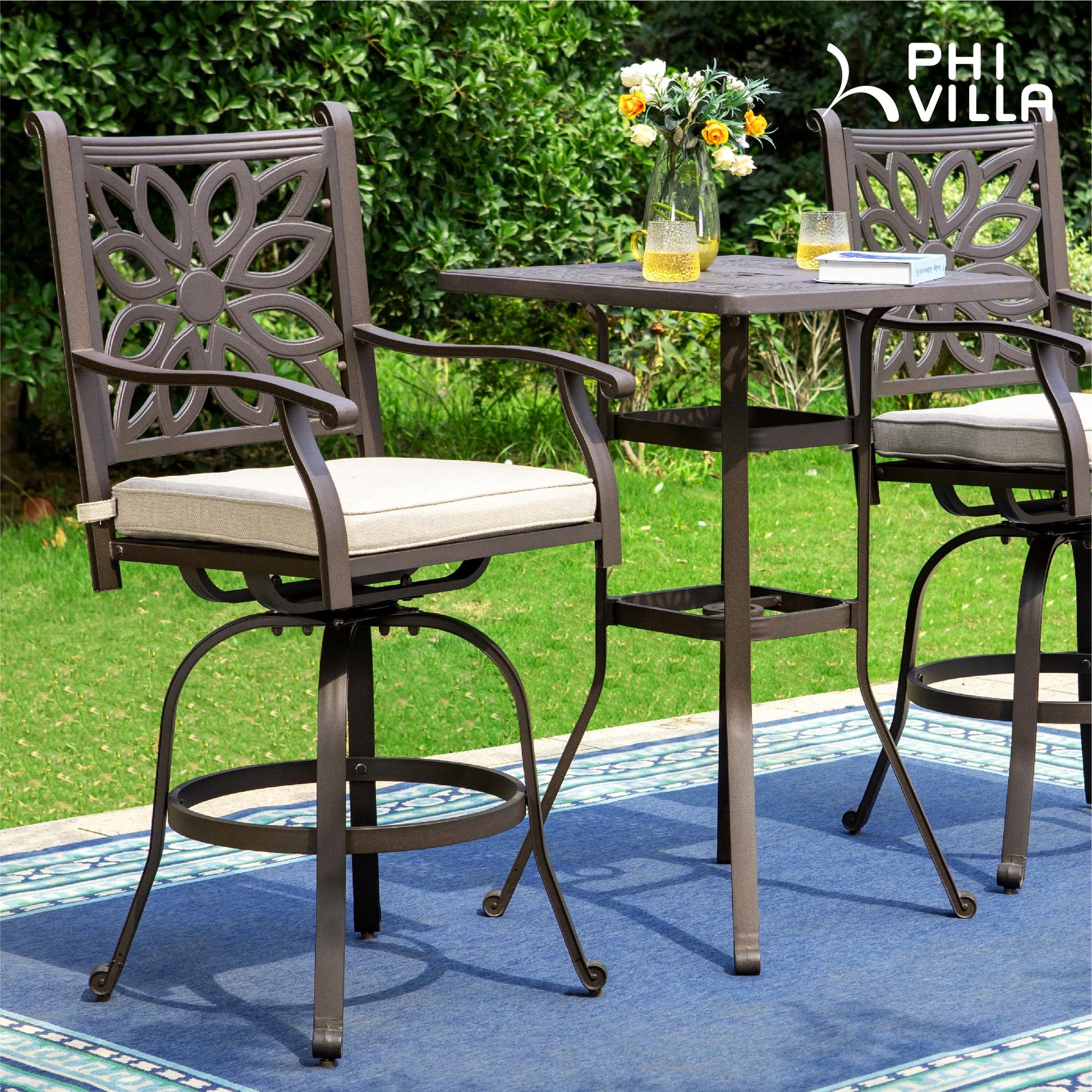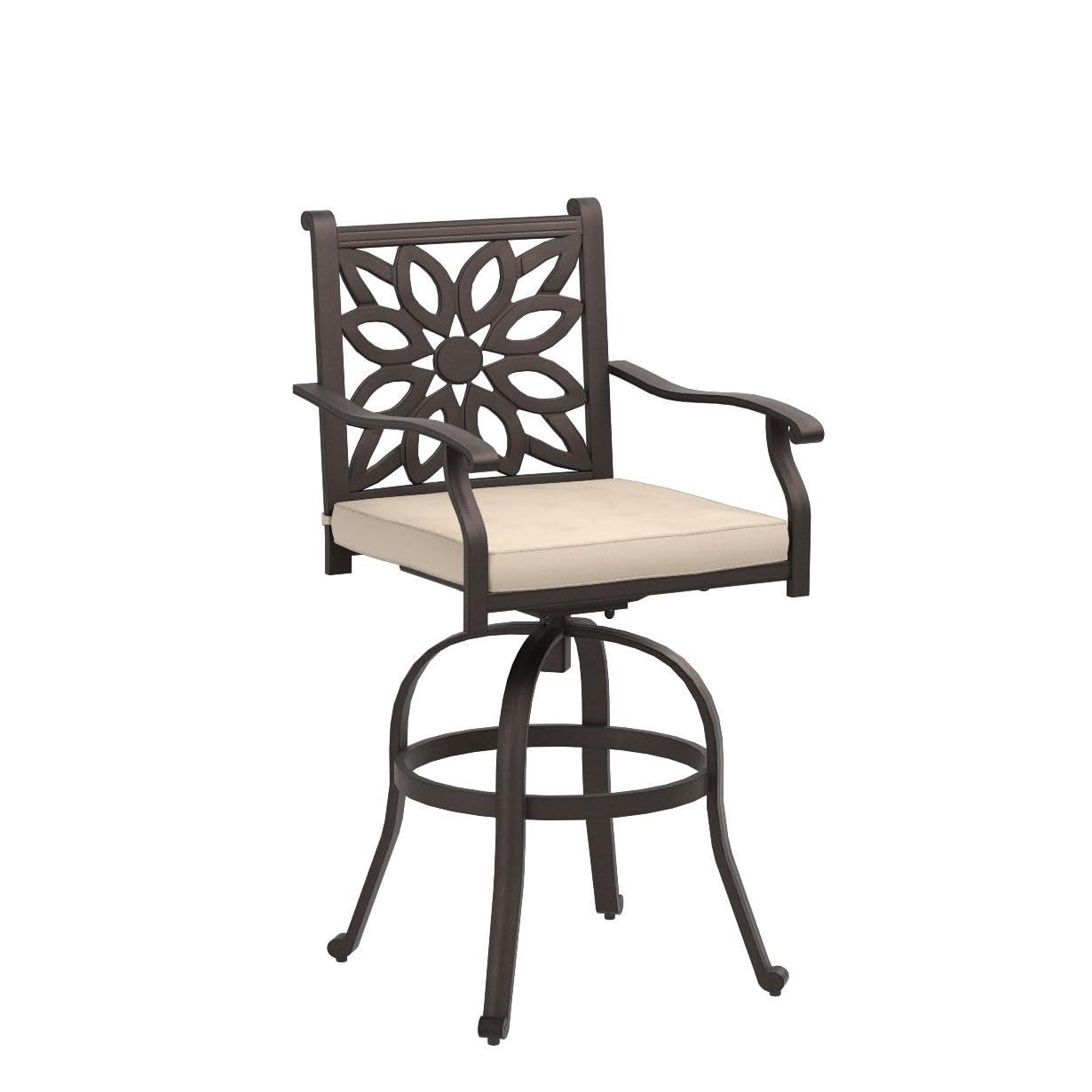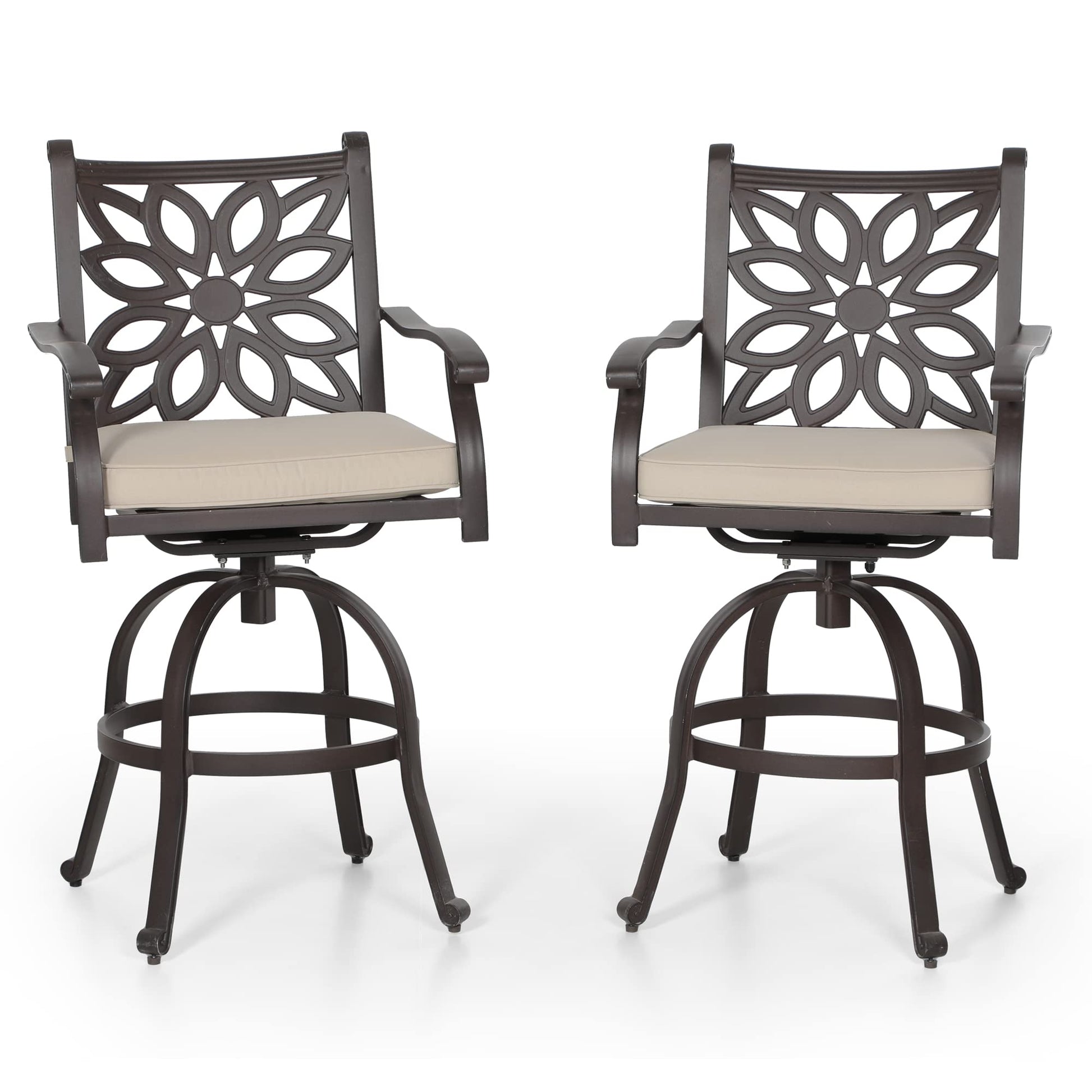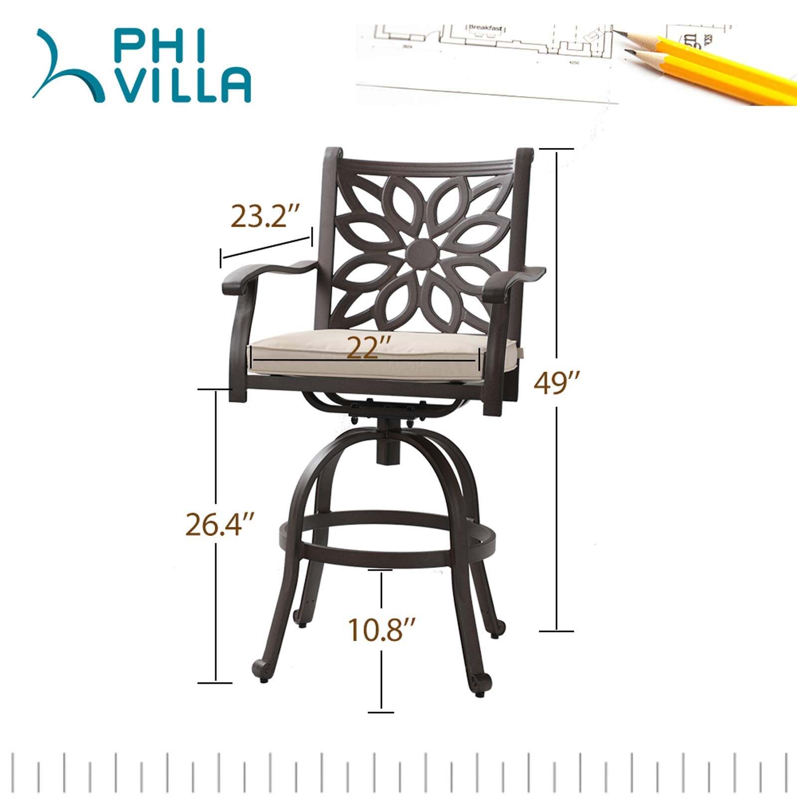 Color Brown Product Dimensions 25.6"D x 27.2"W x 49"H Size 25.6"D x 27.2"W x 48.8"H Special Feature Cast aluminum, 360-degree swivel, with cushion, two parts easy to assemble