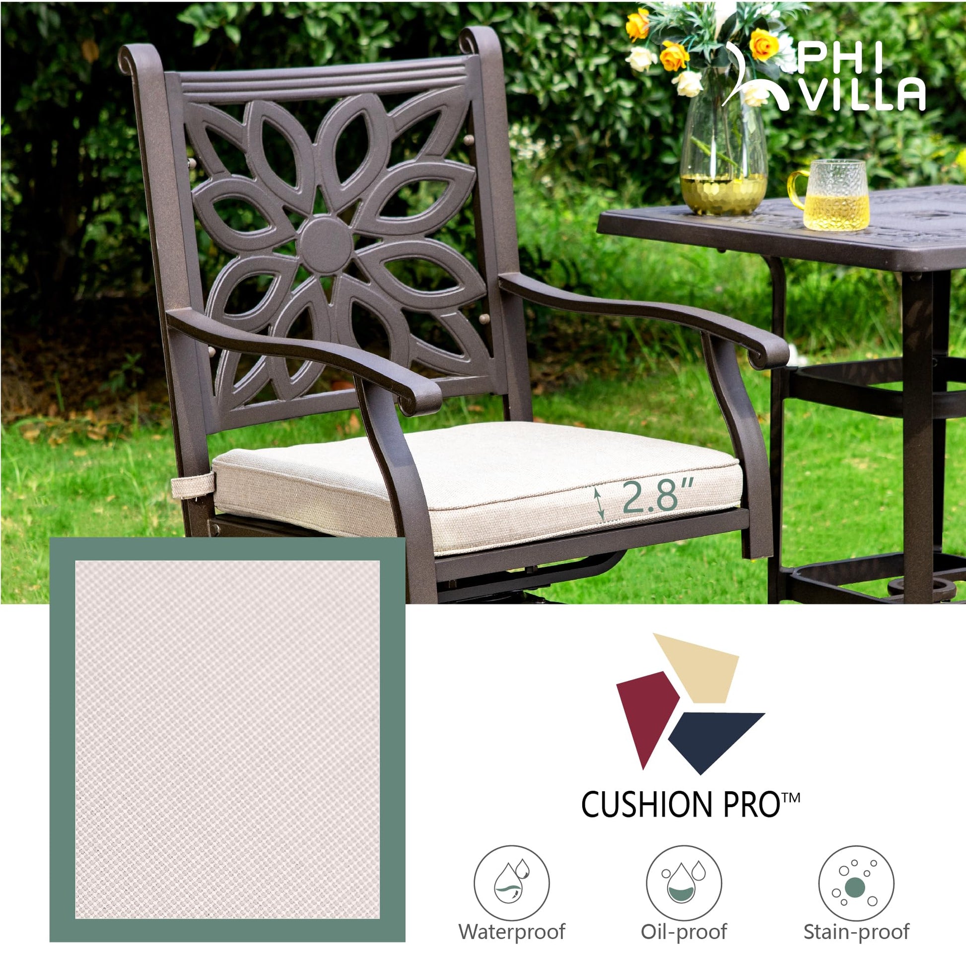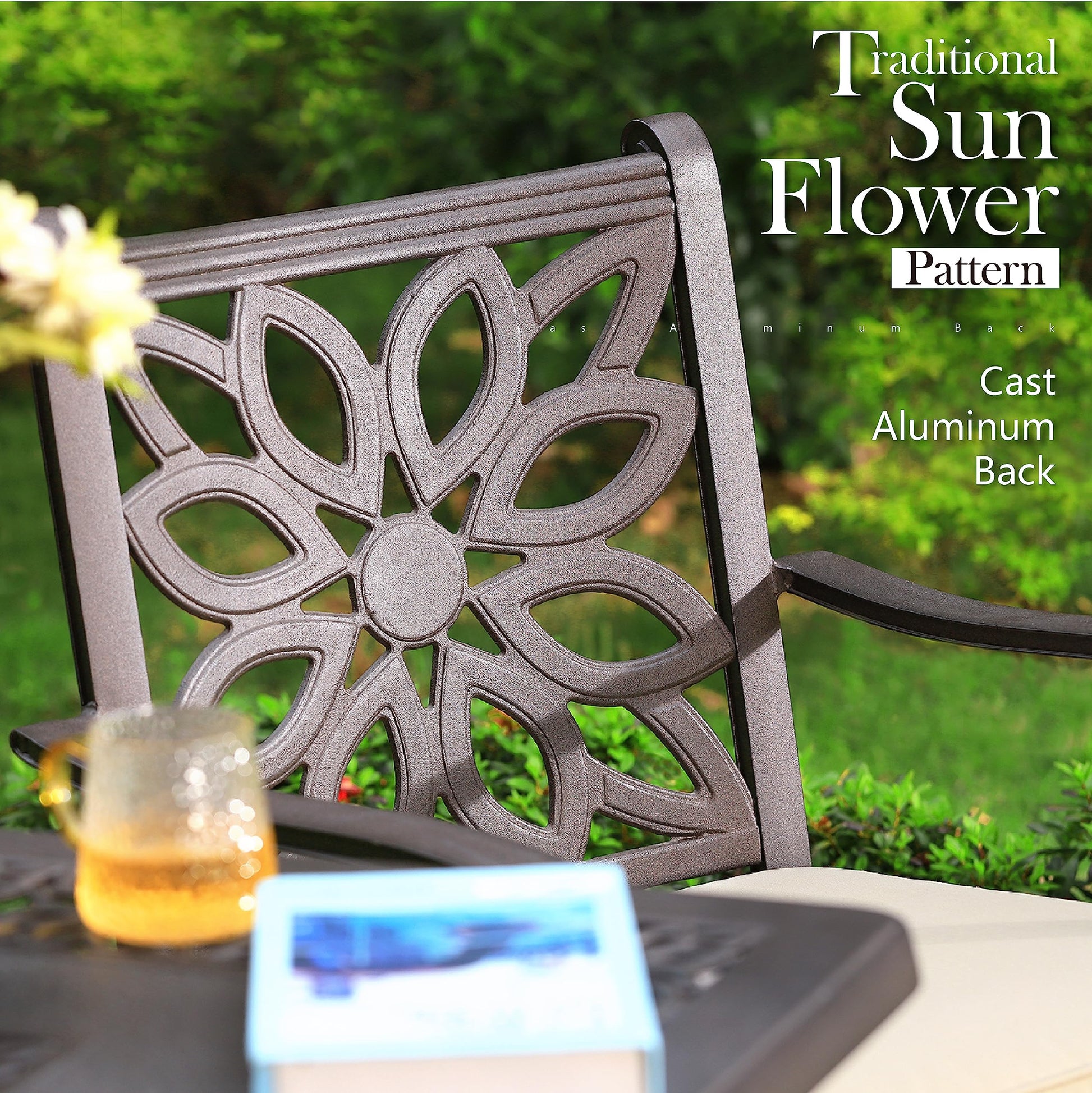 - Sturdy Construction: Constructed with the rust-resistant cast aluminum which makes it all-weather proof and last for many years. Springy sponge cushion is super comfortable and soft. Waterproof fabric make it ideal for the outdoor living space