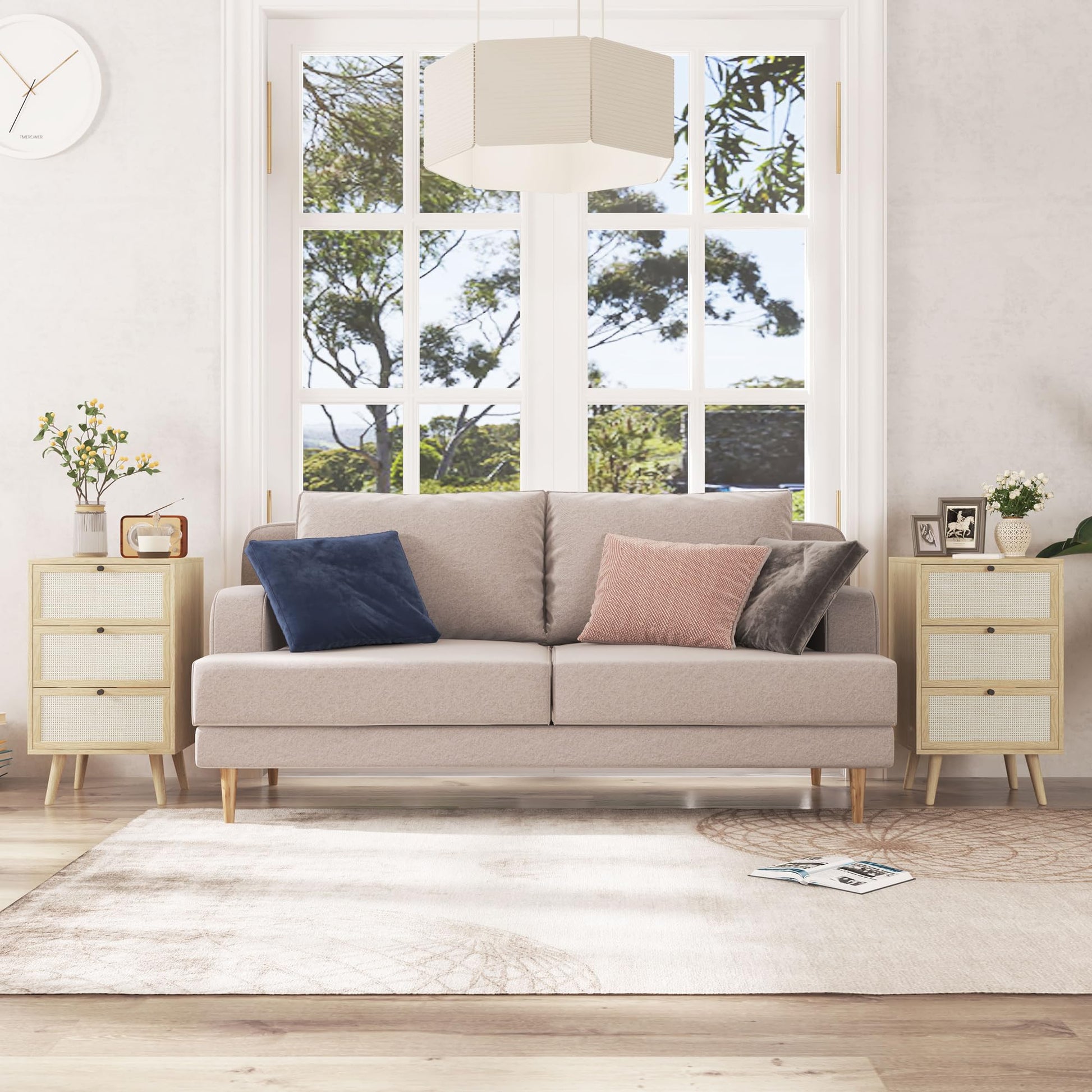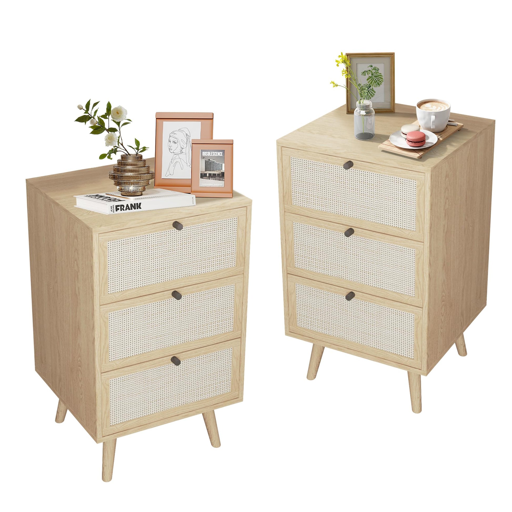 PHOYAL Rattan Nightstand Set of 2, End Table Rattan Bedside Table with Storage 3-Drawer Side Table
