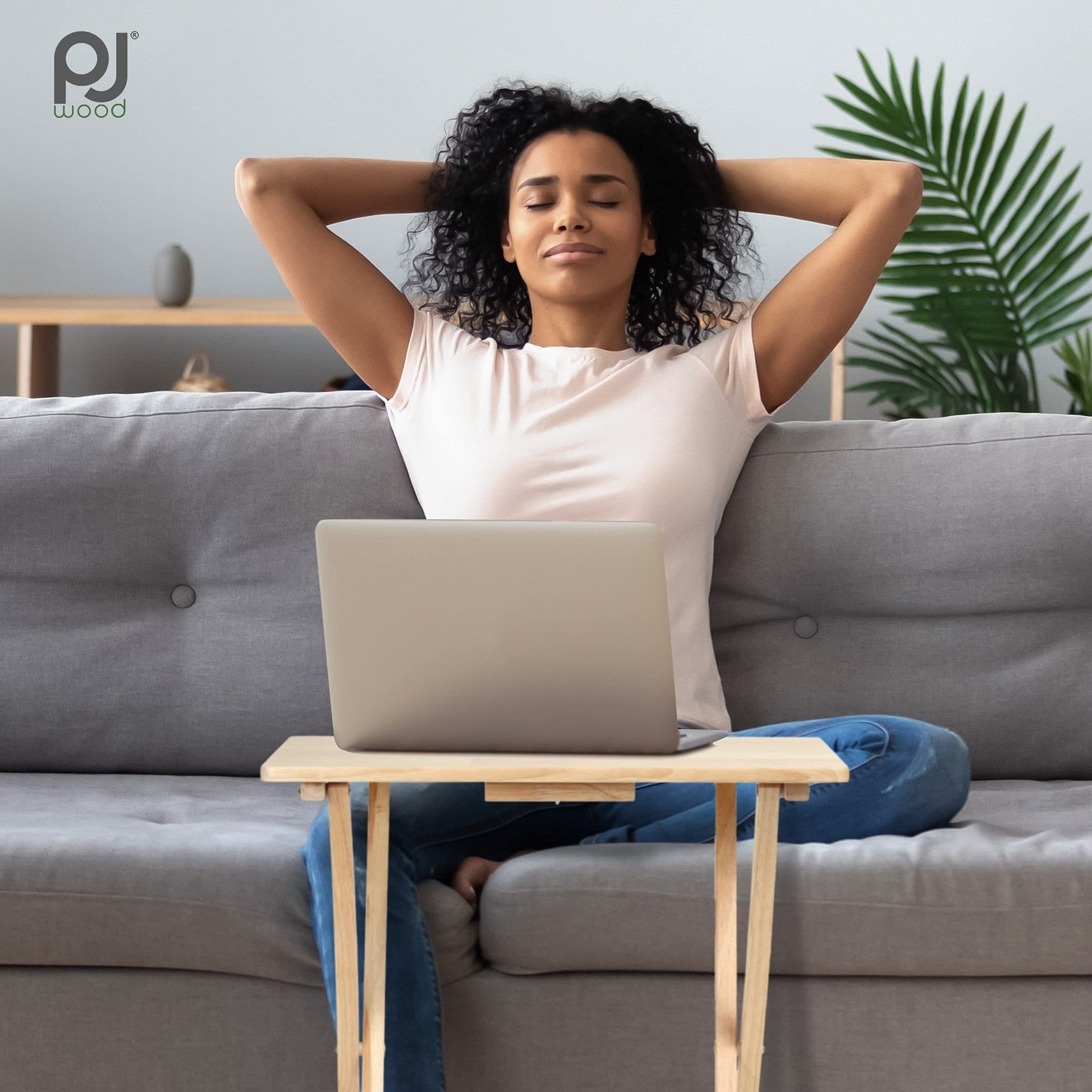 TV Snack Serving Tray Table, Solid Wood Construction with Natural Fini