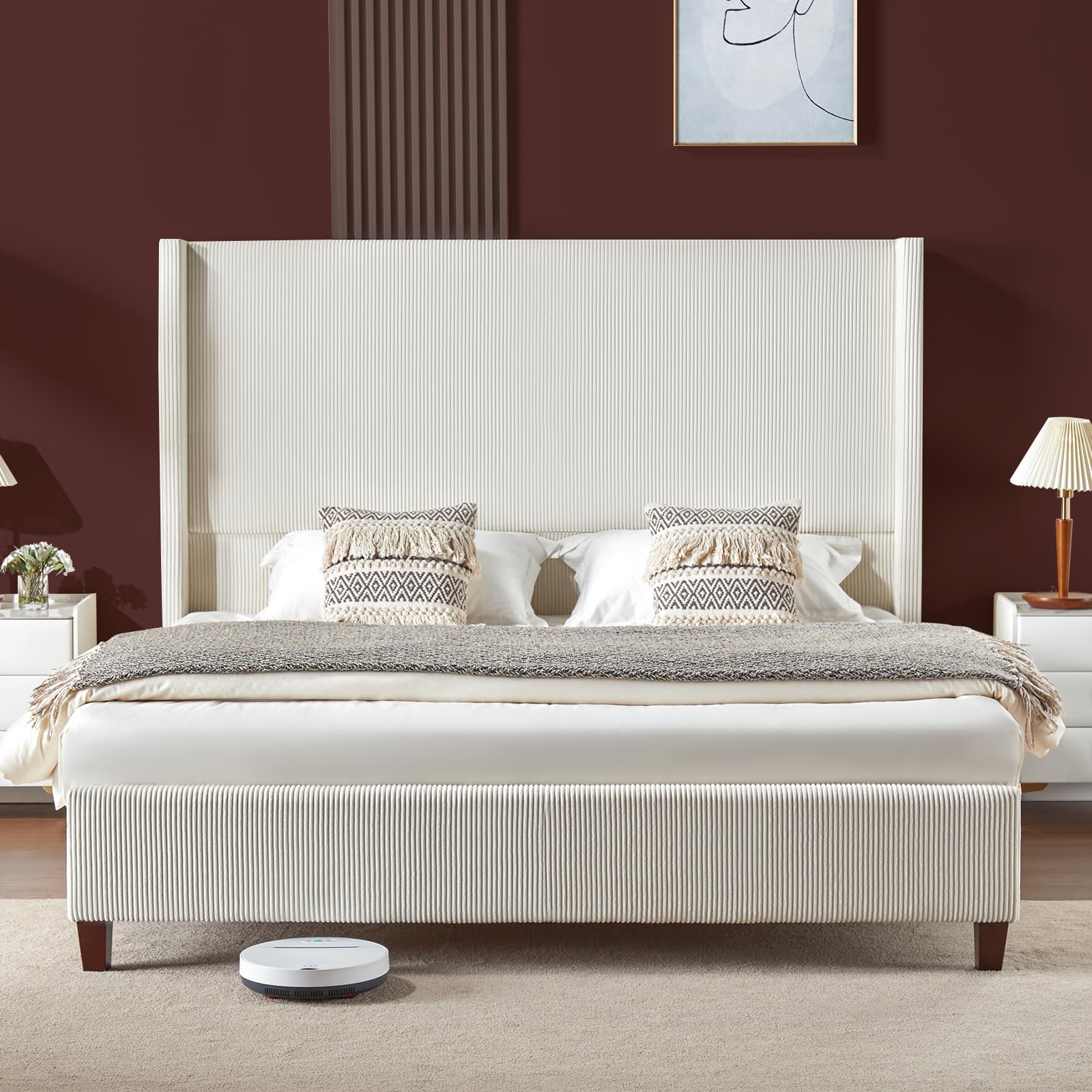 King Size Platform Bed Frame with 62" Headboard Corduroy Upholstered Bed/Wingback