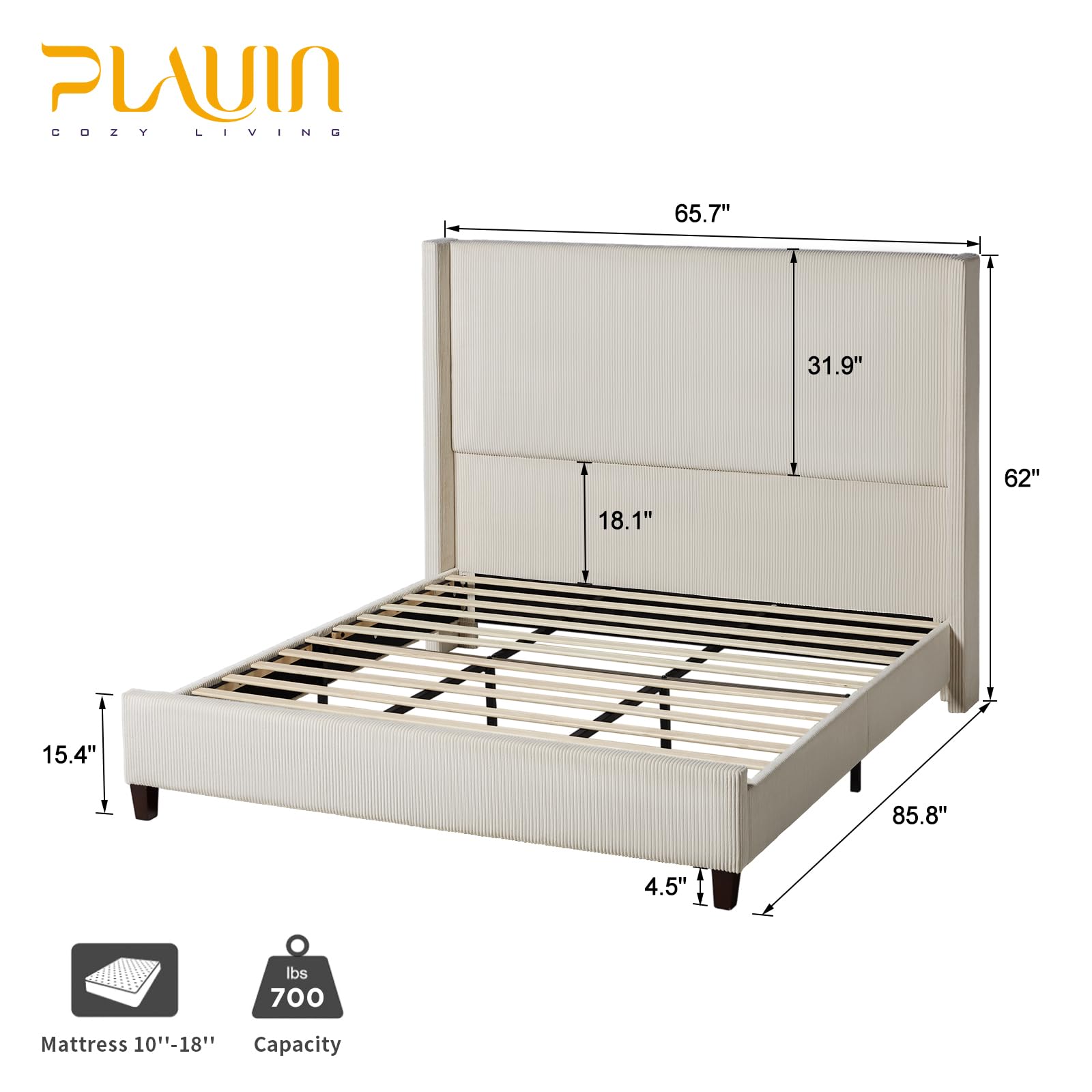 - Elegant Platform Bed Frame Exquisite upholstered bed features wingback style headboard, adding a contemporary and aesthetic appearance to your bedroom.