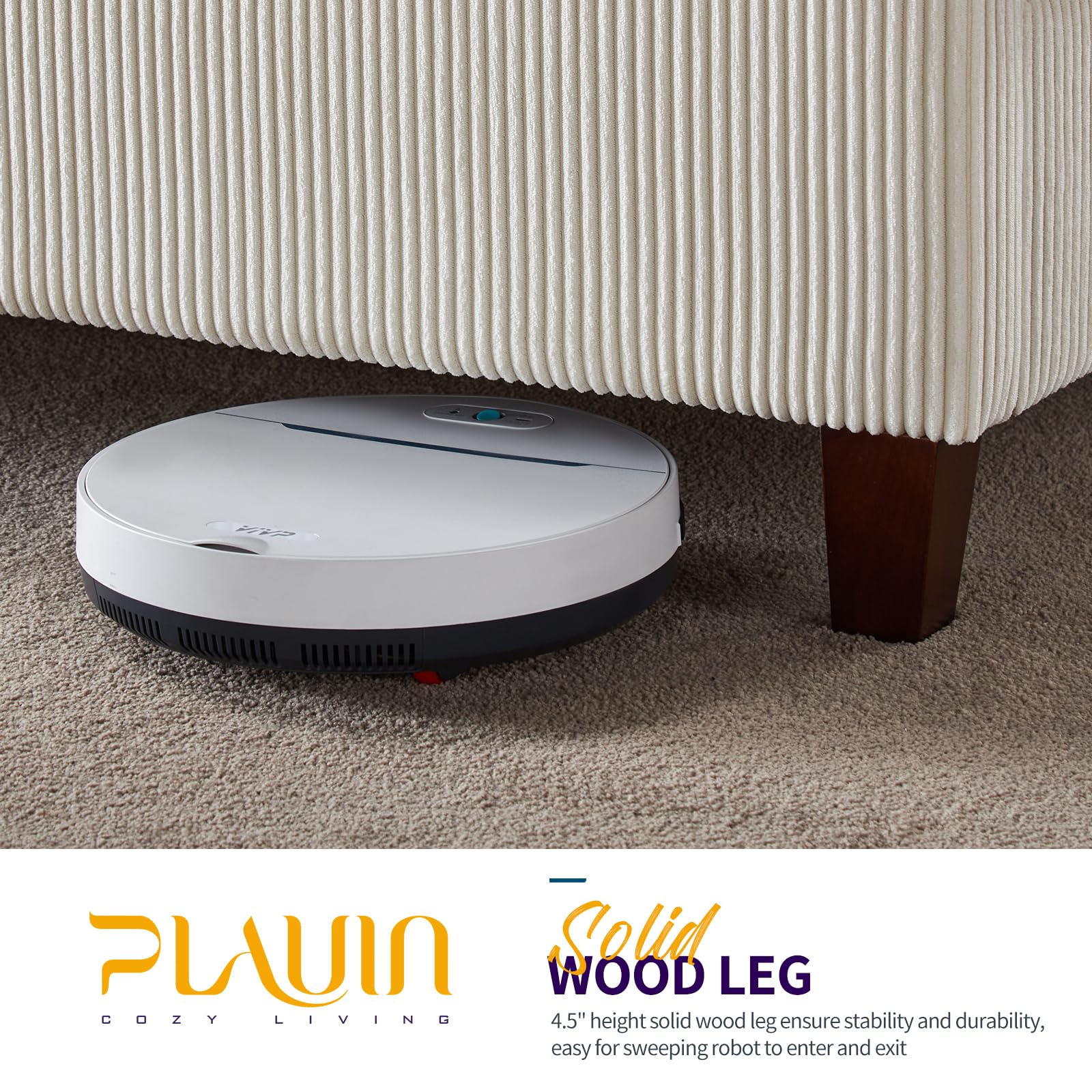 - Solid Wood Legs 4 durable hardwood in quadrate-tapered shape wood legs ensure the bed frame has enough strength and support. 4.5" height clearance allows for easy cleaning with a robotic sweeper.