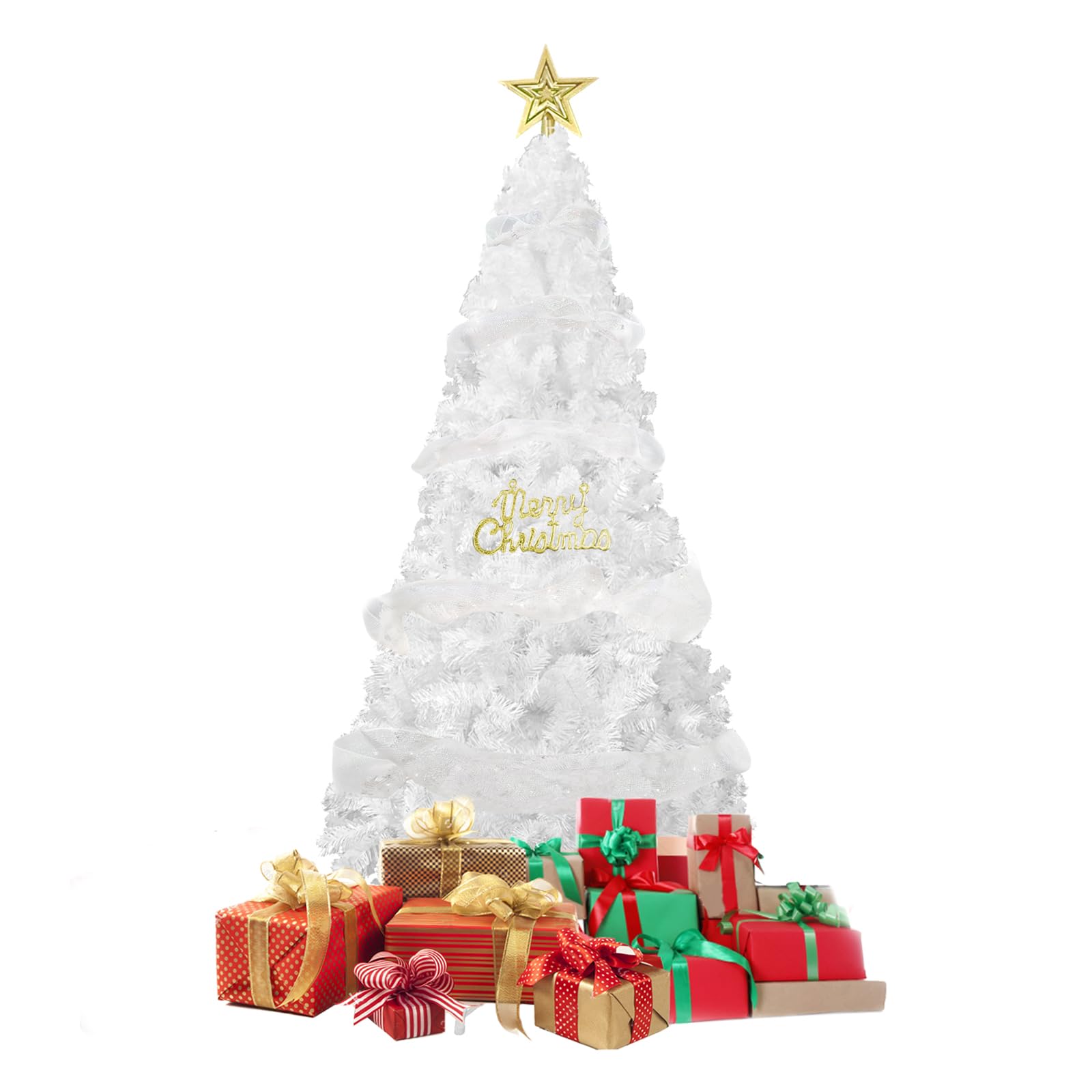 - Life-like artificial Christmas tree with a full and fluffy look from any angle in your decorated places. The white and thick finish of branch tips enhanced the natural leafy vibe of this decorative holiday tree.