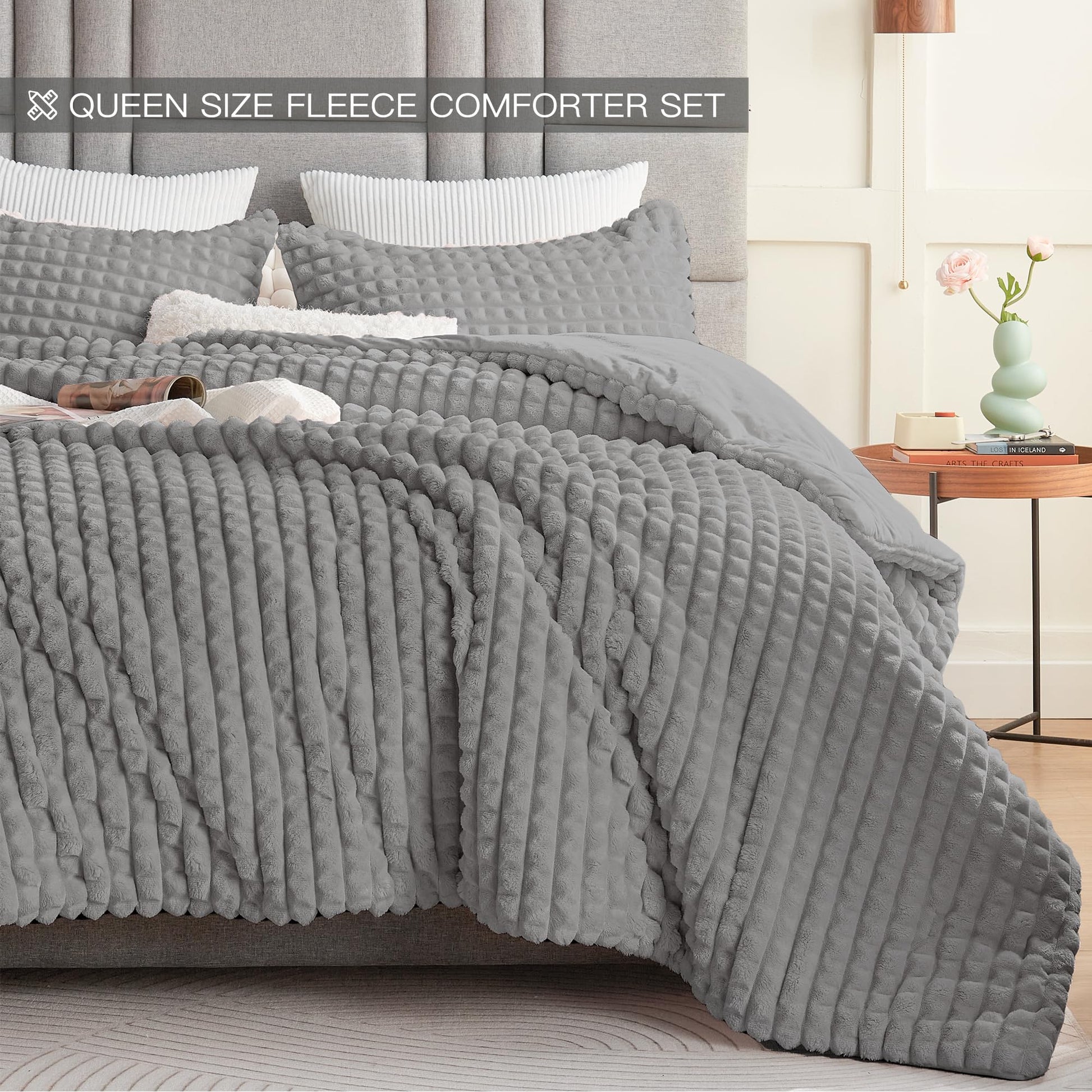 3-Piece Queen Fluffy Fleece Comforter Set with 2 Pillowcases