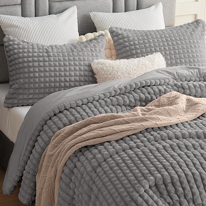 - Complete Coordinated Bedding: Each set comes with a comfortable comforter and one or two matching pillowcases, ensuring full warmth and a coordinated look. Made from 100% polyester, with a high - density fleece side for quick heating and warmth, and a silky micro - mink side for a delicate feel. The elegant checker pattern with 3D texture and the grey plush color give any bedroom a modern, sophisticated touch.