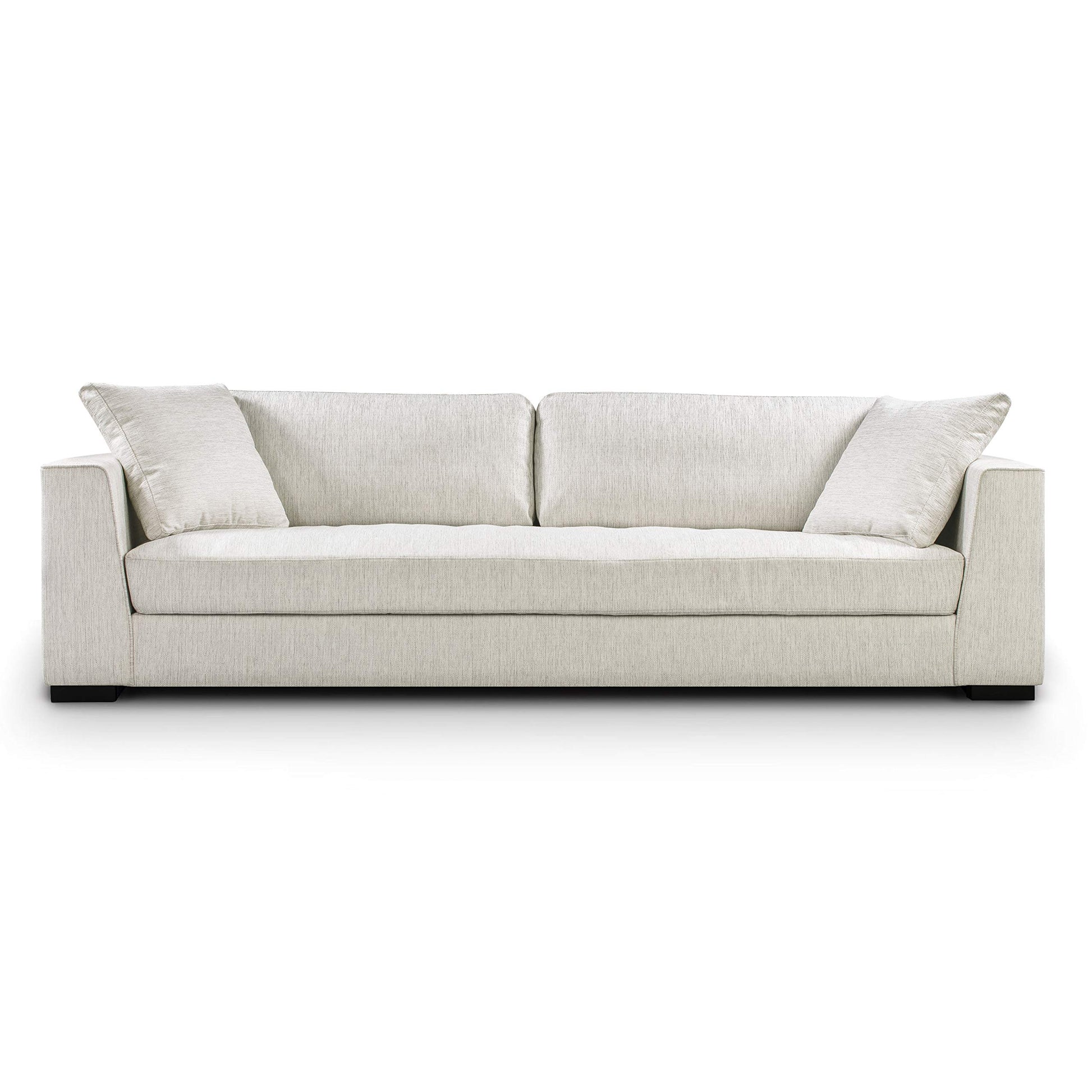 Details: Simple, elegant, and eminently livable, the Capri Sofa is as comfortable as it is stylish. Upholstered in a durable neutral fabric, the bench-style seat cushion, which features a layer of feathers for extra softness, invites you to stretch out with a good book or enjoy a weekend nap. Resilient rubber webbing atop a corner-blocked solid wood frame provide superior support, while low, subtle legs let the sofa's crisp, clean silhouette shine.