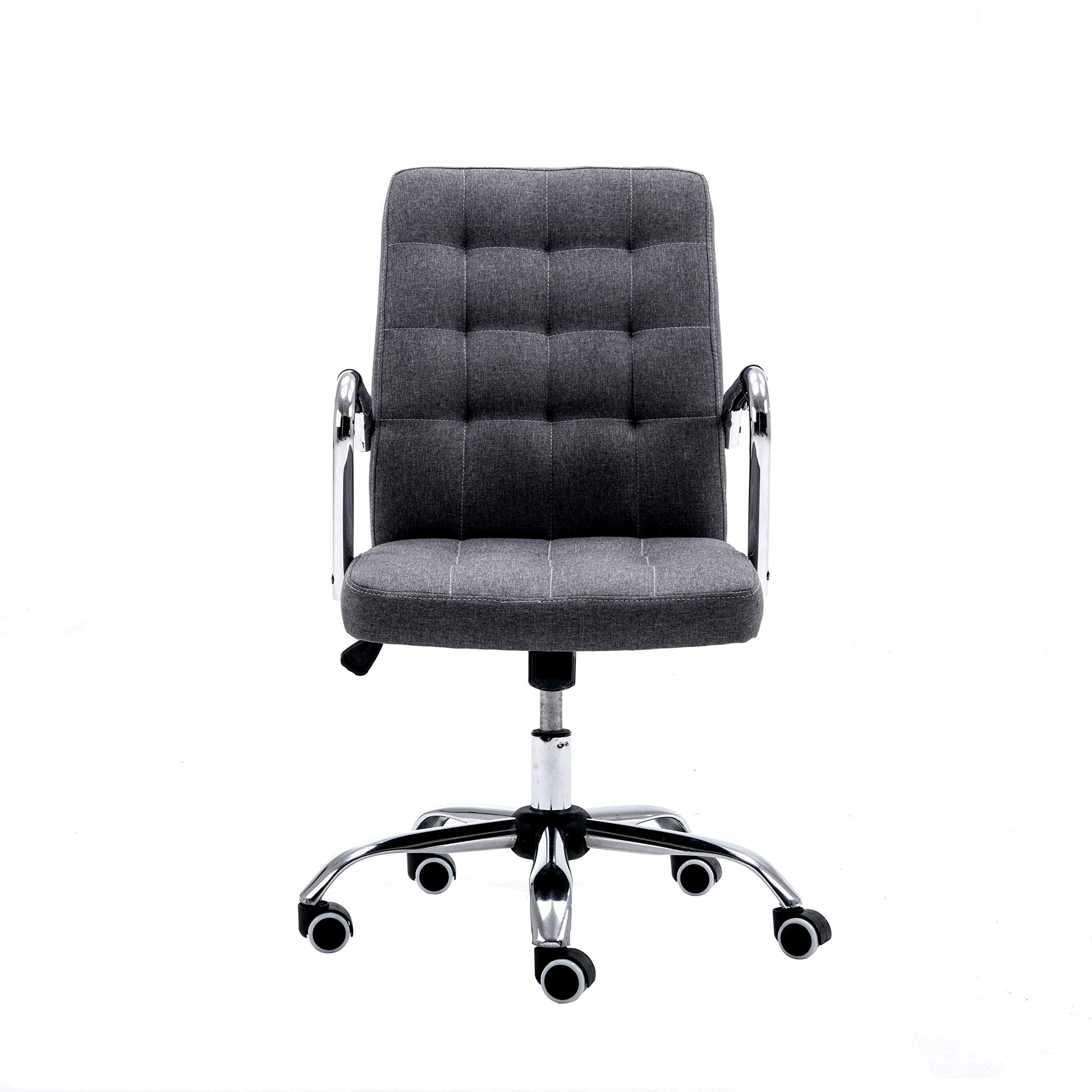 Swivel Office Chair with Durable Hemp Fabric Upholstery in Classy Tufted Design, Adjustable Height, Ergonomic Armrests and Roller Wheels