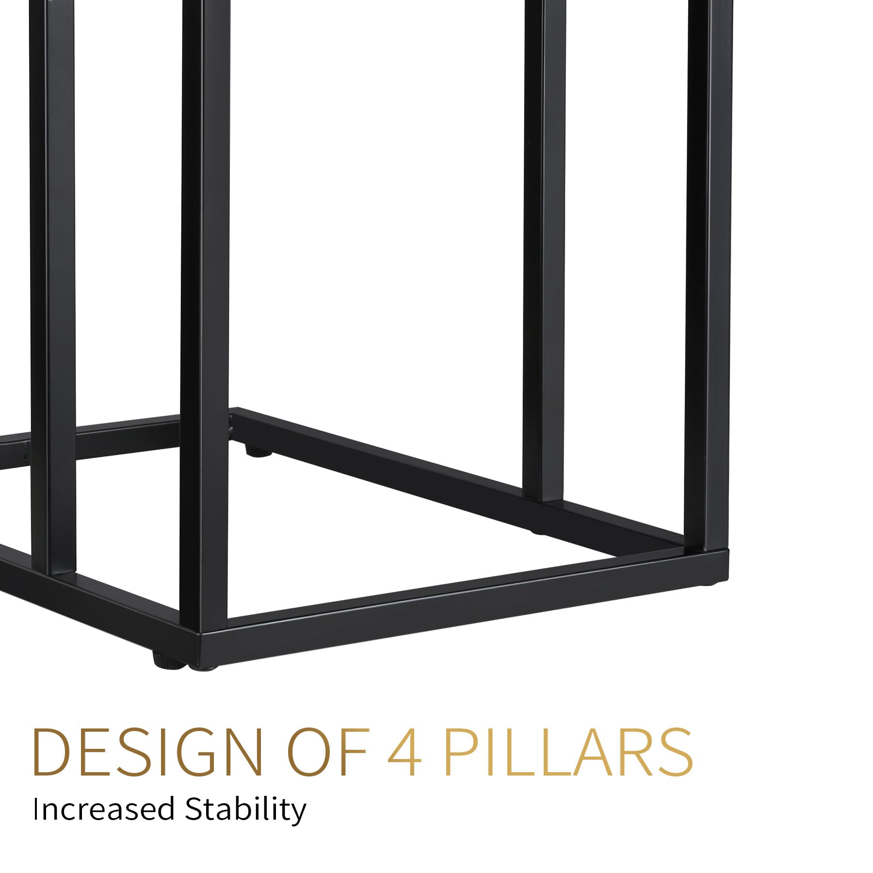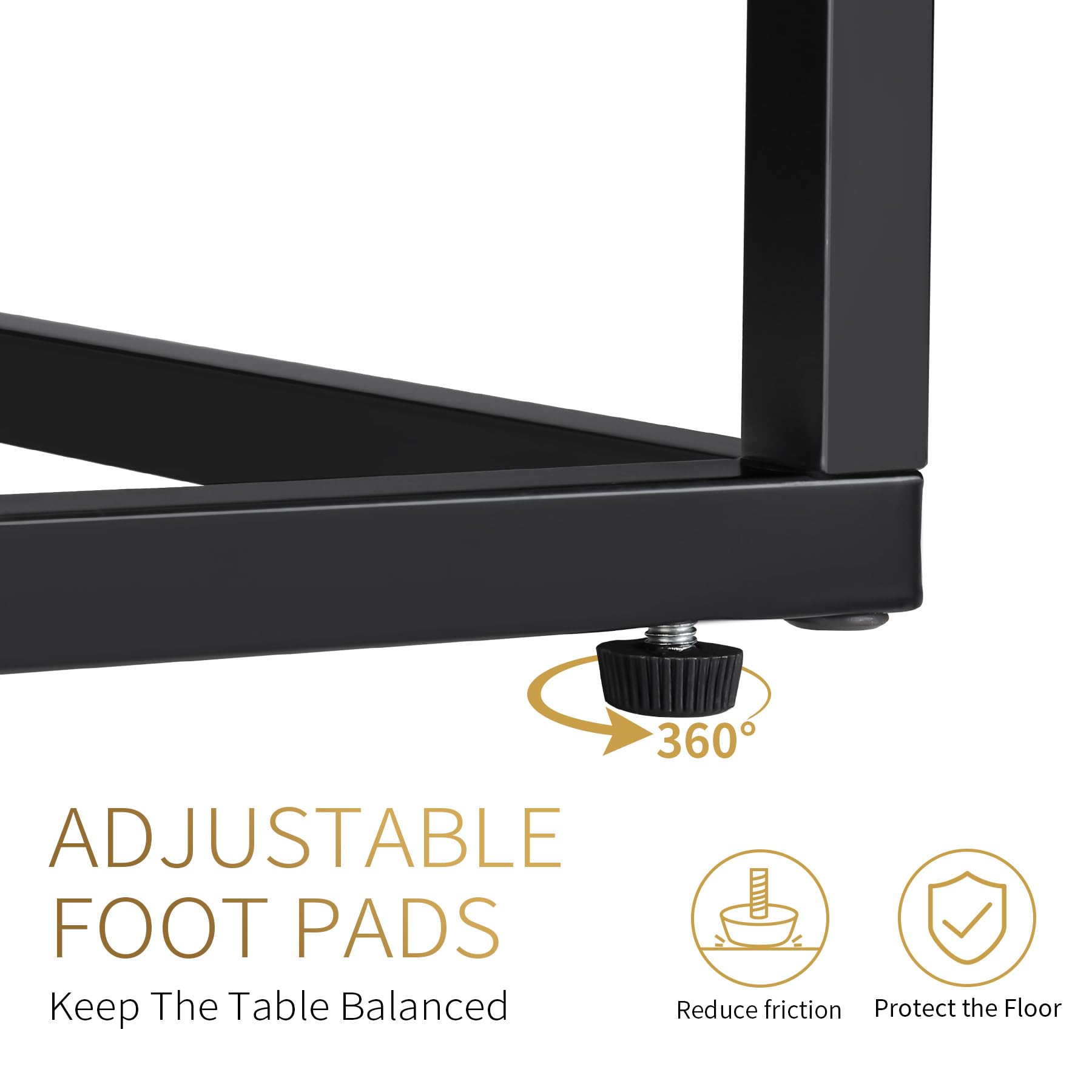 - Strong & Stable The strong black metal frame ensures the stability of this sofa side table, preventing it from shaking. It’s solid enough to support 25 lbs. The 4-leg support system adds extra stability while maintaining a minimalist style. Four adjustable feet will keep this c-shaped couch table balanced on slightly uneven ground, and prevent the floor from scratching.