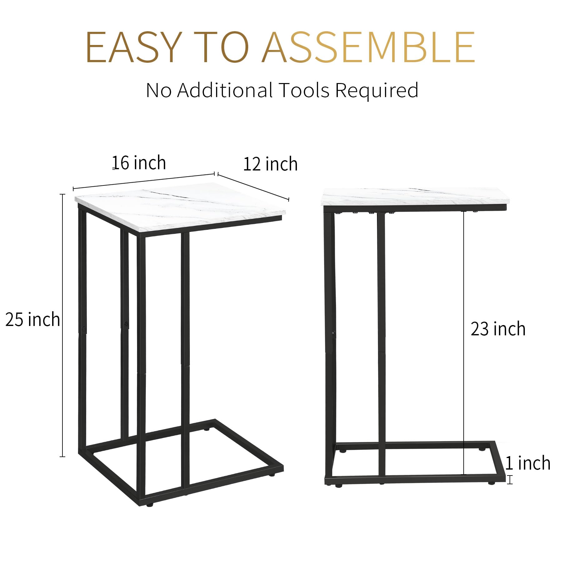 C Shaped Side Table Set of 2, Marble End Table for Sofa and Bed,