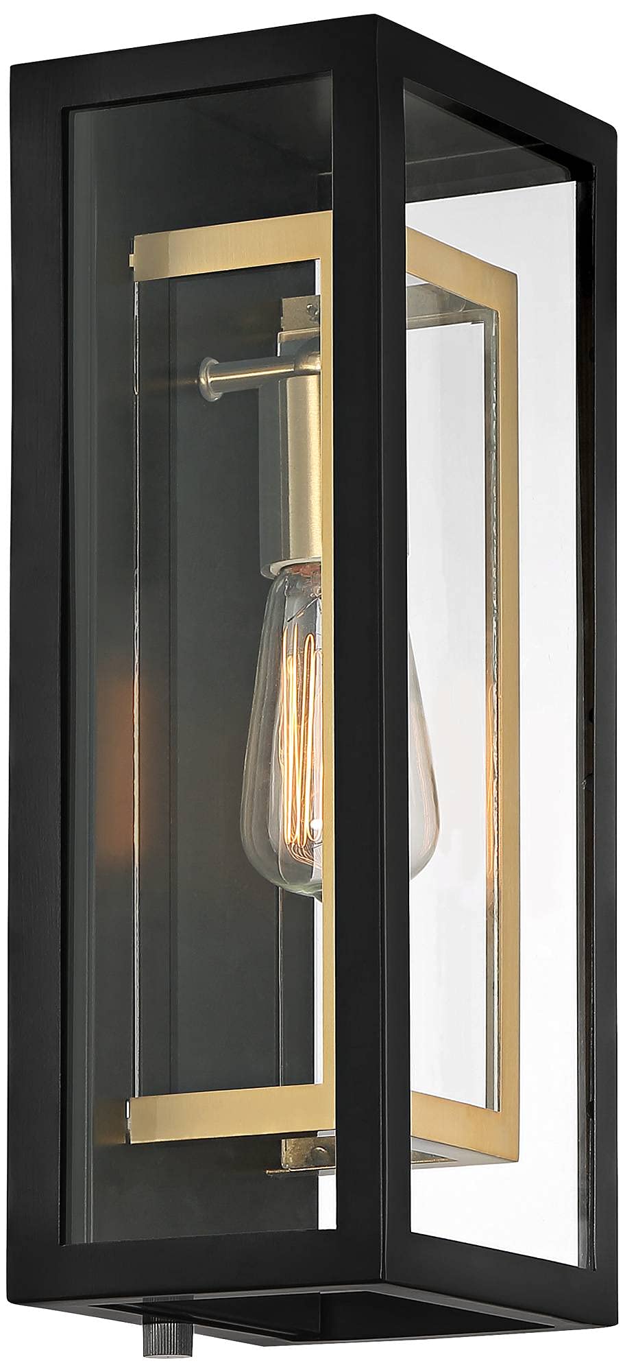 Double Box Industrial Outdoor Wall Light Fixture Matte Black Warm Brass Metal 15 1/2" Clear