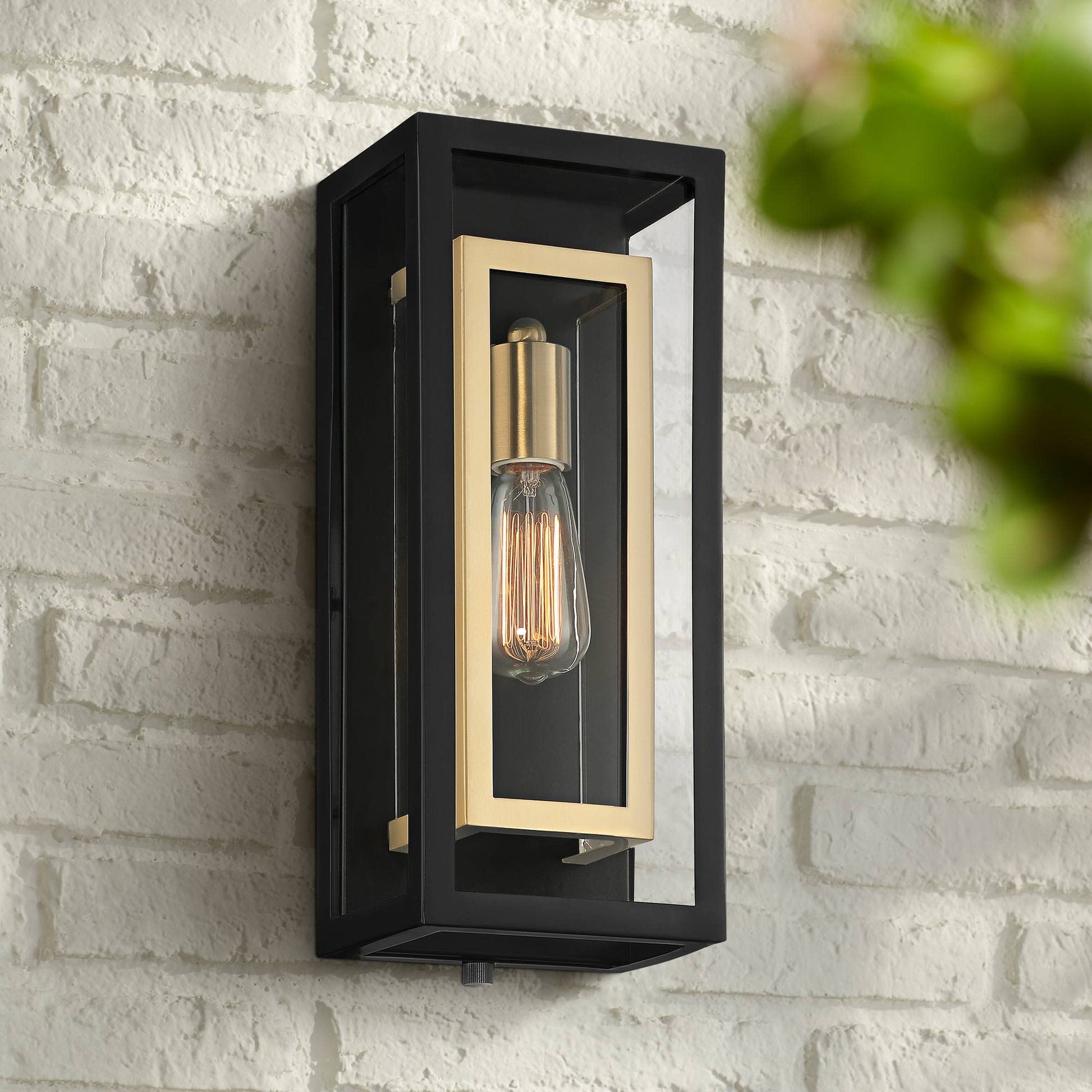 - Enhance your backyard with this outdoor wall sconce, blending mid century modern elegance and an industrial light fixture design. Featuring a black outdoor light fixture with striking gold accents, this modern wall sconce is both stylish and weatherproof, making it perfect as outdoor lighting for your house's exterior while adding a unique, timeless charm to any space.