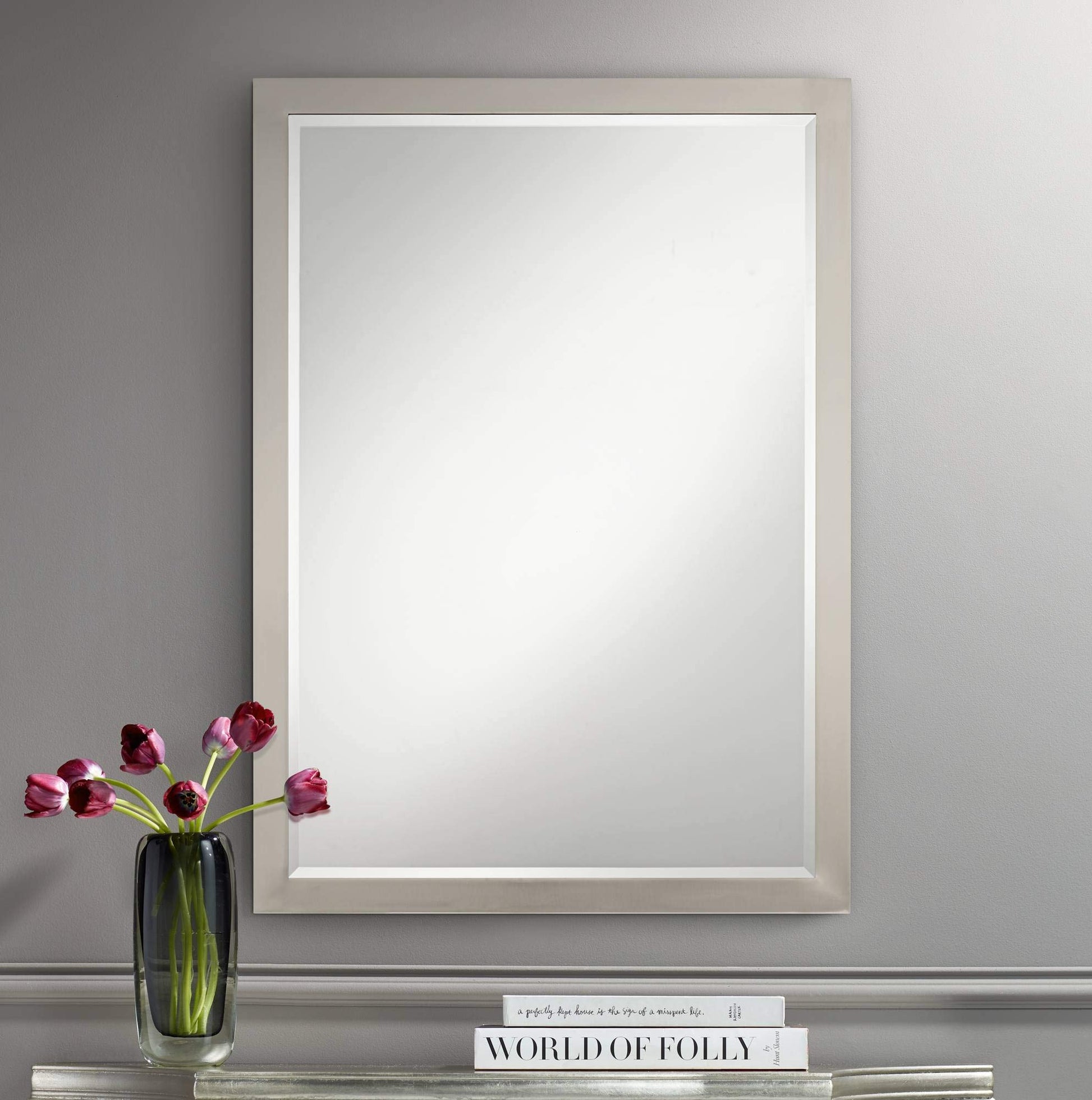 Vanity Decorative Wall Mirror Modern Sleek Brushed Nickel Metal
