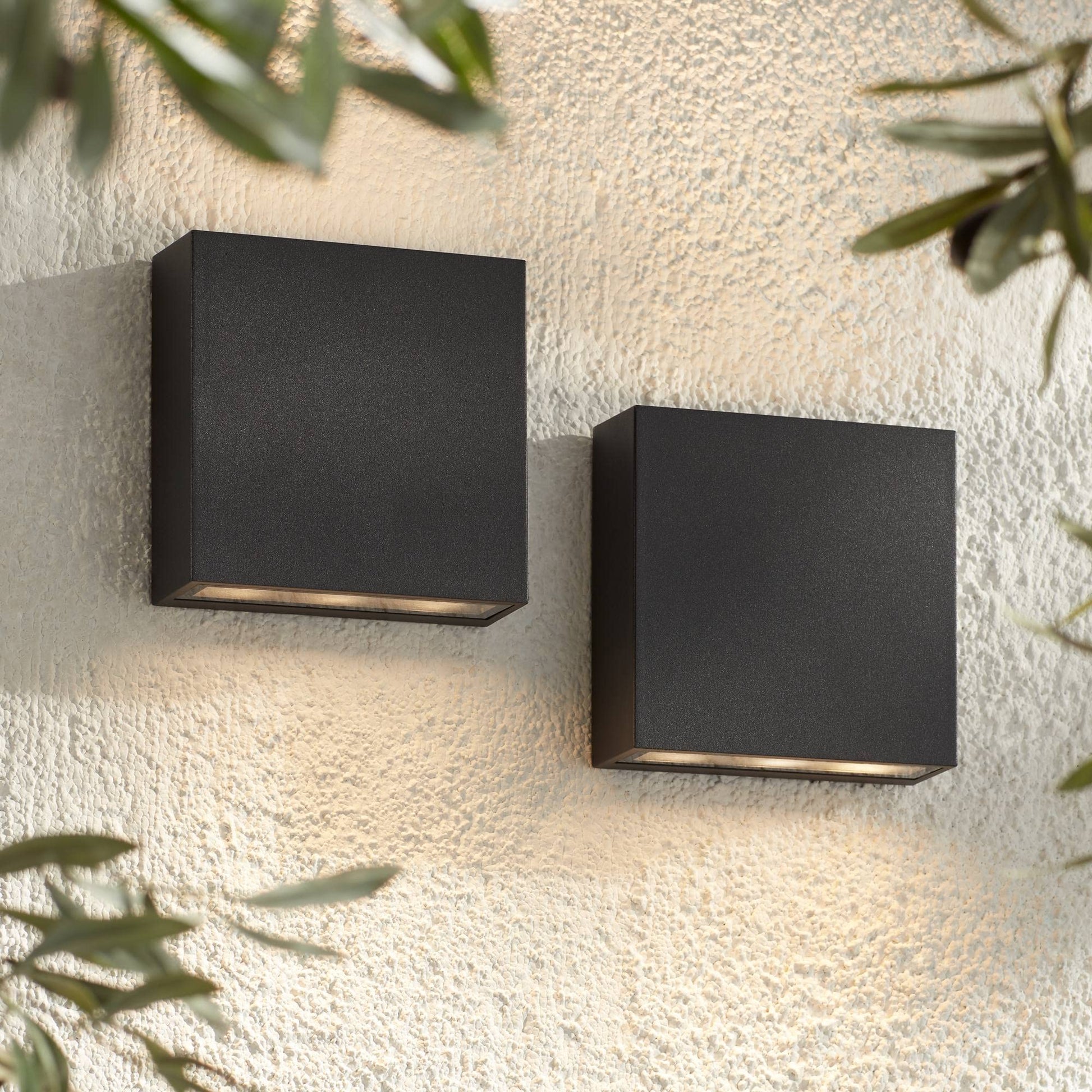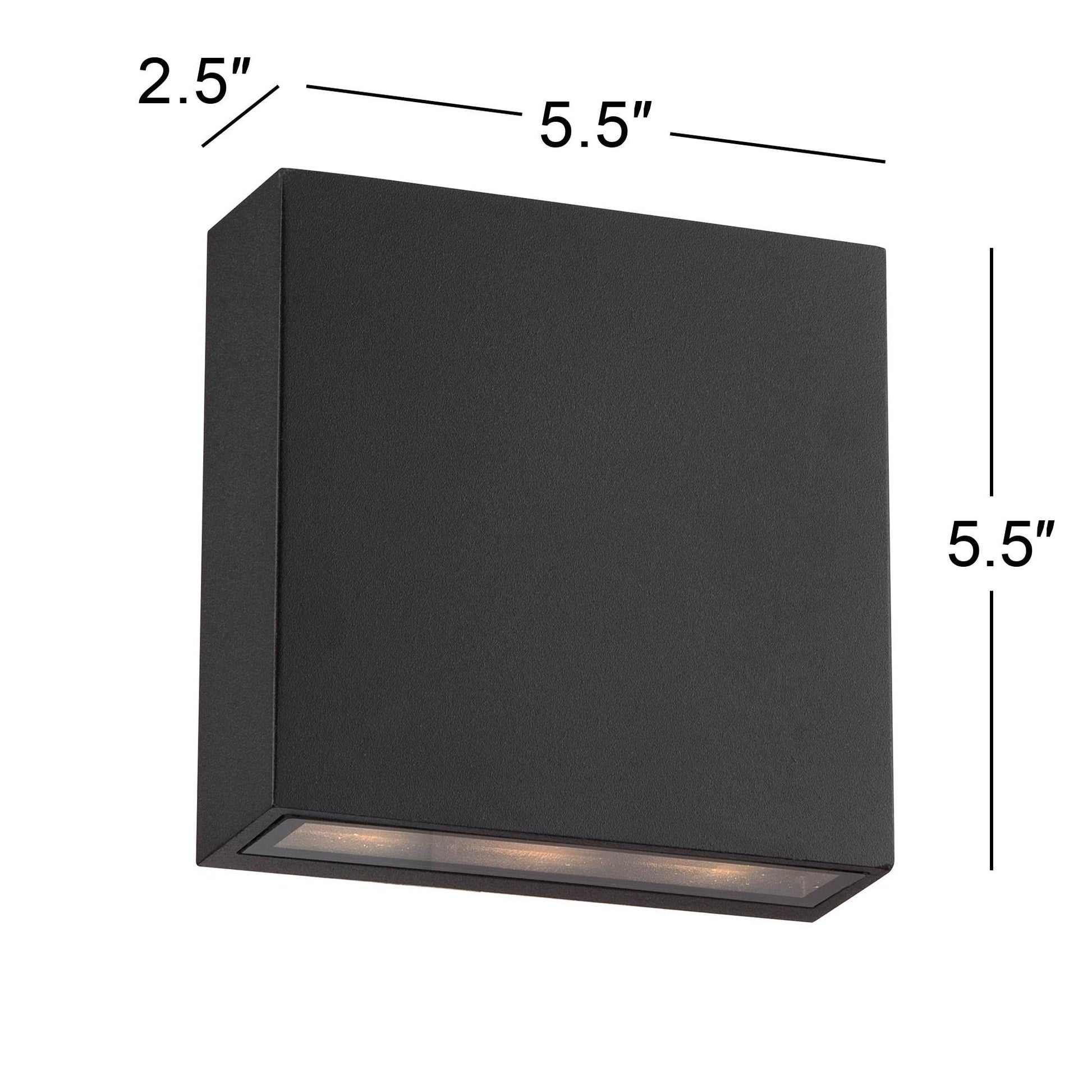 Possini Euro Design Stanford Modern Outdoor Wall Lights Set of 2 Black Metal LED Downlight 5 1/2" Tempered Glass for Exterior House Porch Patio Outside Deck Garage Yard Front Door Garden Home
