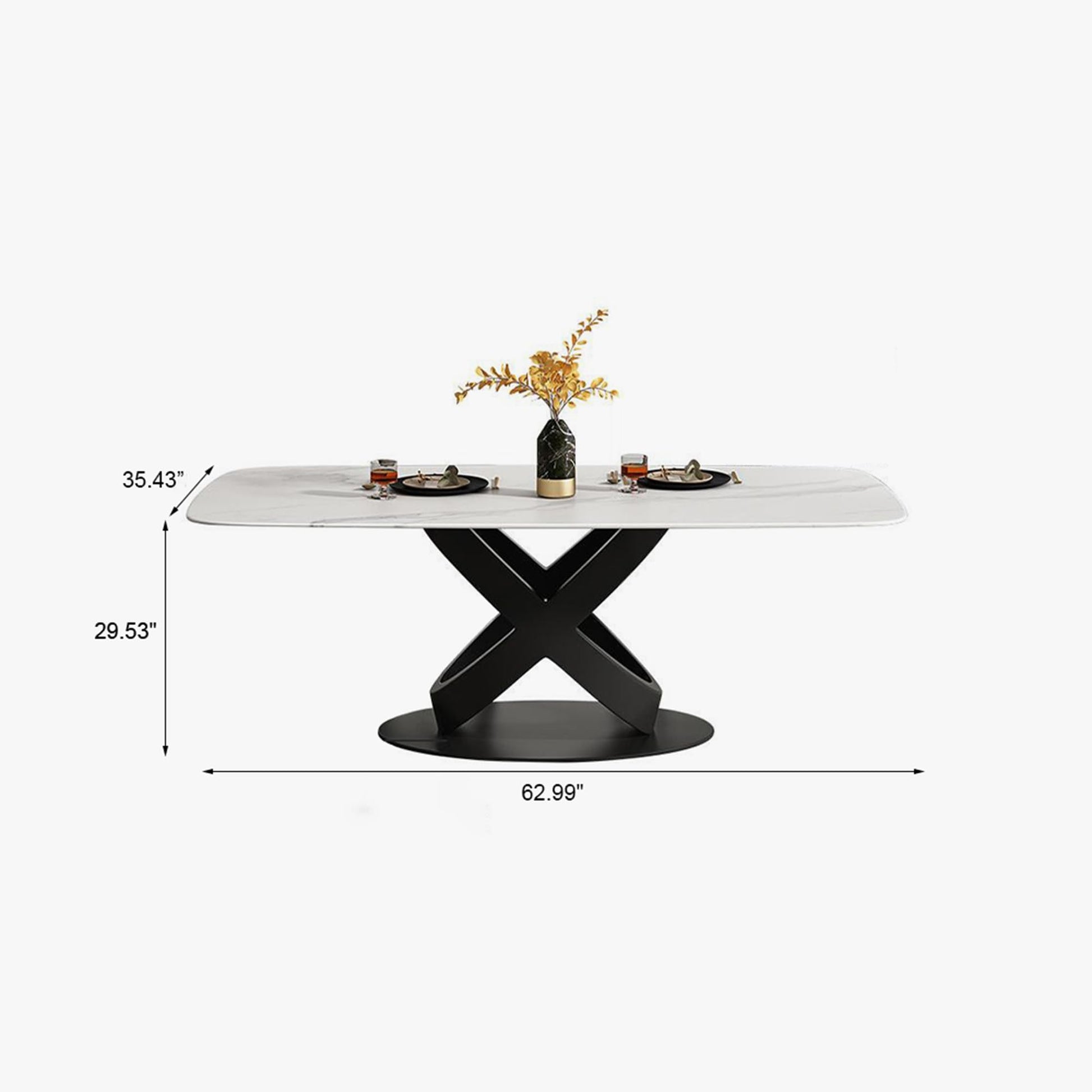 Modern Dining Table for 6, Matte White Dining Table Sintered Stone Dining Table Top with X-Shape Carbon Steel Pedestal Table,