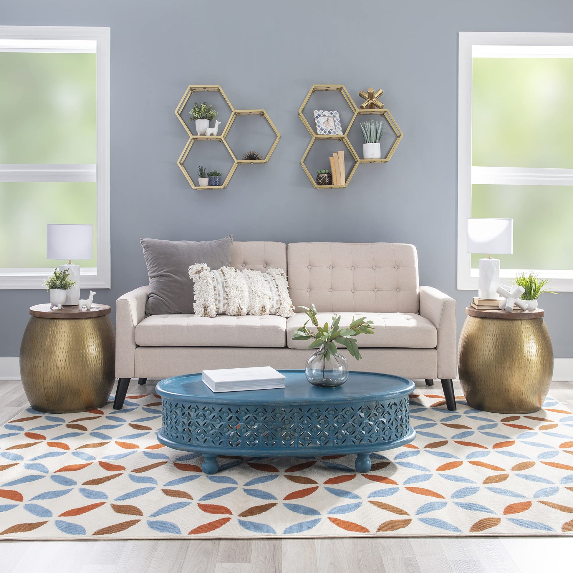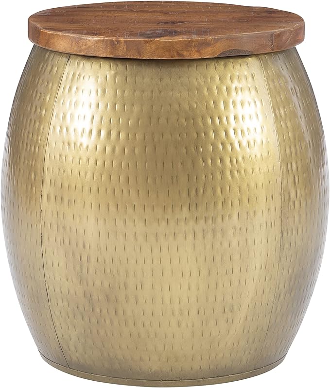 - Arrieves fully assembled and ready to be used, this side table has a hammered iron drum body with muted gold finish offers a rustic flair.
