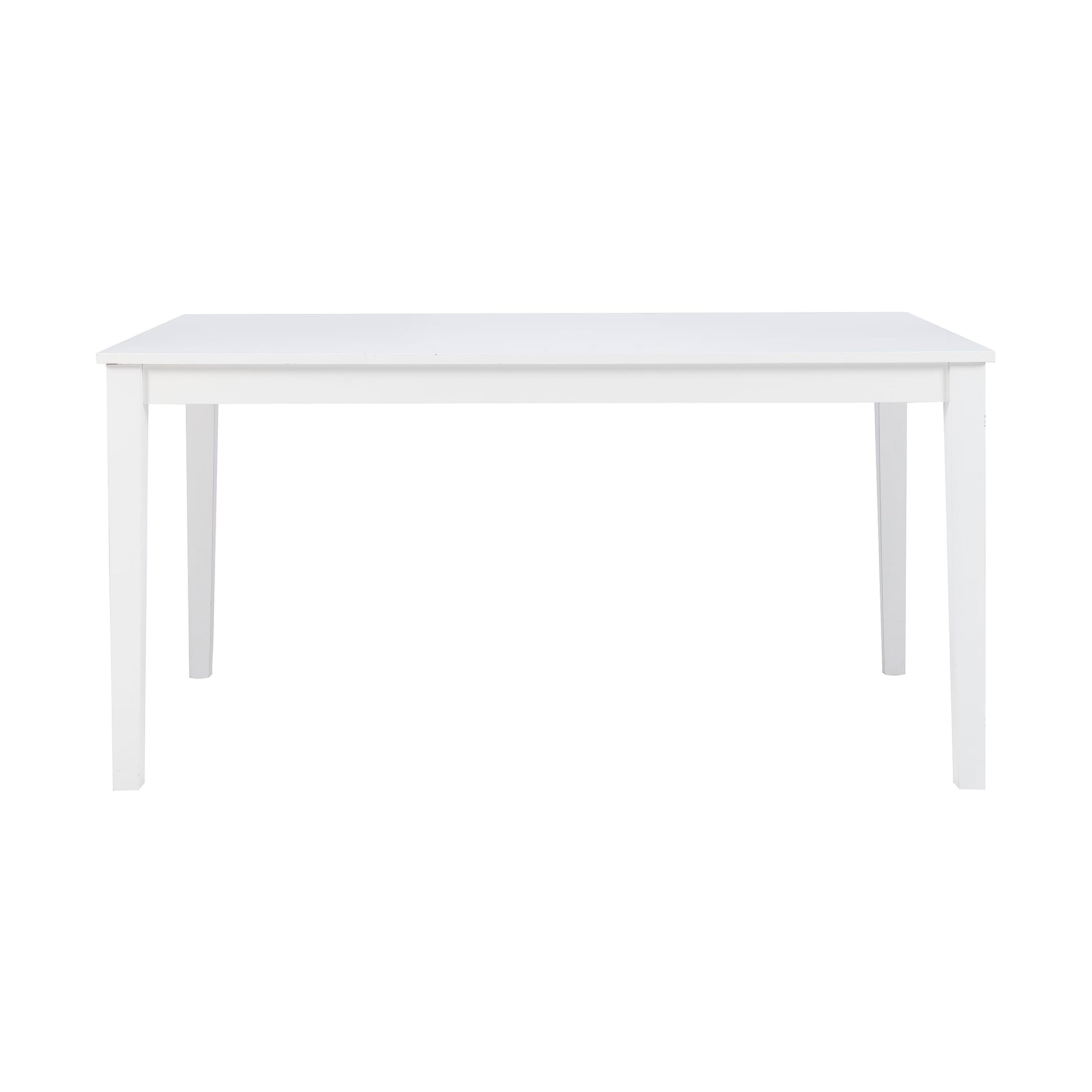 Details: Designed to comfortably seat 6, this dining table serves as the perfect centerpiece for family gatherings. Solid acacia wood creates a sturdy frame that supports up to 150 lbs and will provide strength and durability for years to come. For additional protection against wear and tear, the glistening white finish is covered in a glossy lacquer coating that offers extra shine. So versatile, this table pairs seamlessly with a variety of dining seat options