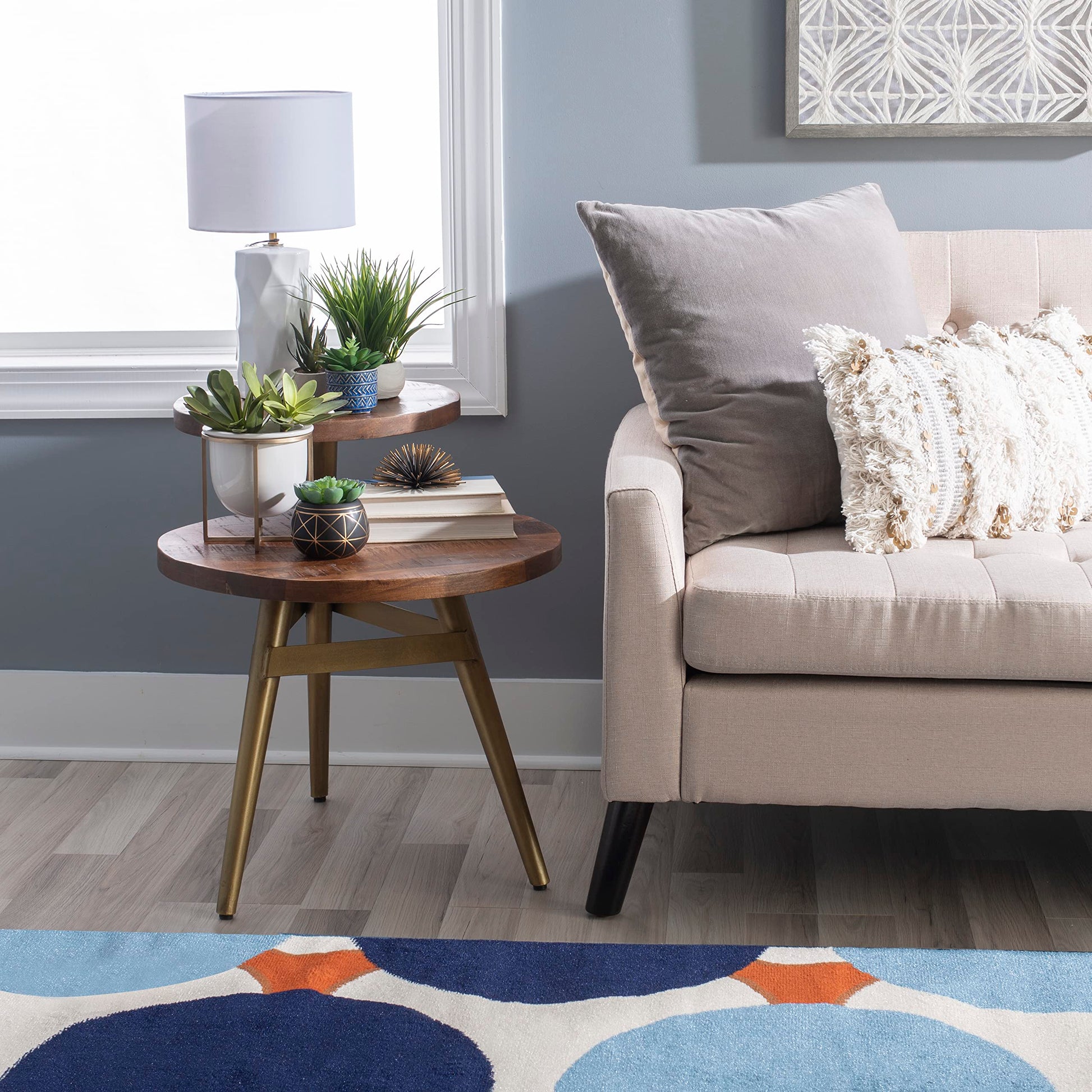 - Top table and bottom table measure at 16"W and 21"D diameters respectively and have the potential to showcase for cascading greenery, unique succulents, or any other personal collection.