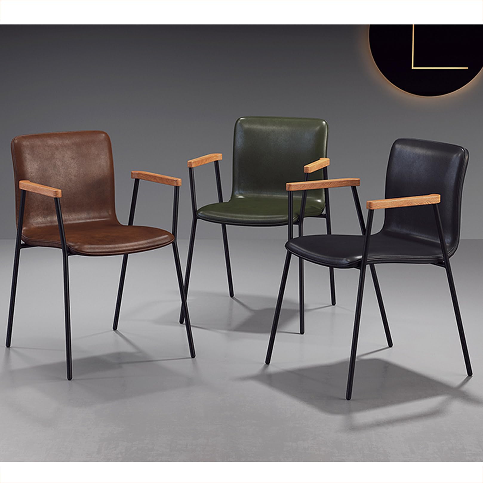 Mid-Century Modern, Upholstered Faux Leather Seat Chairs with Arm,