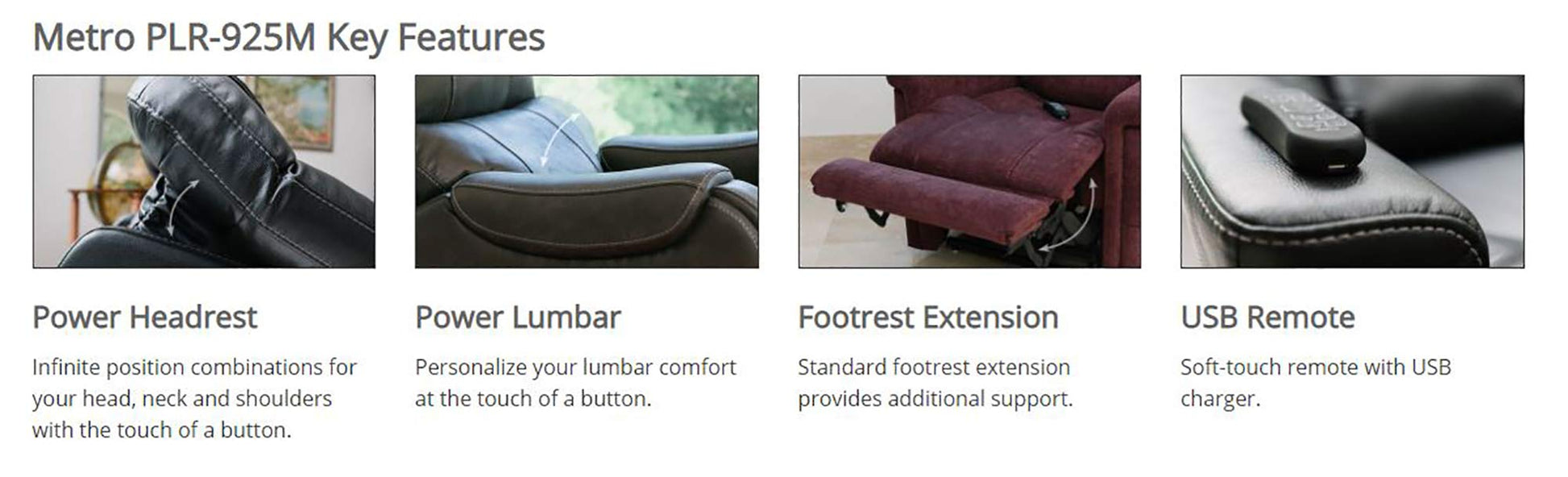 - Contemporary comfort has never been more stylish! The Metro power recliner from the VivaLift! collection offers power lumbar, for personalized ergonomic support.