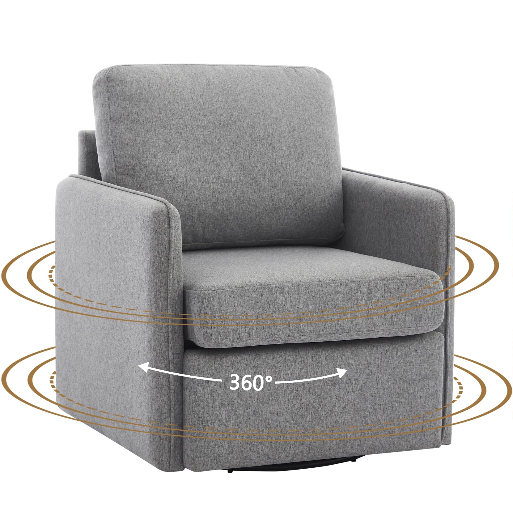 360° Swivel Accent Chair, Modern Upholstered Linen Fabric Arm Chair with Hidden