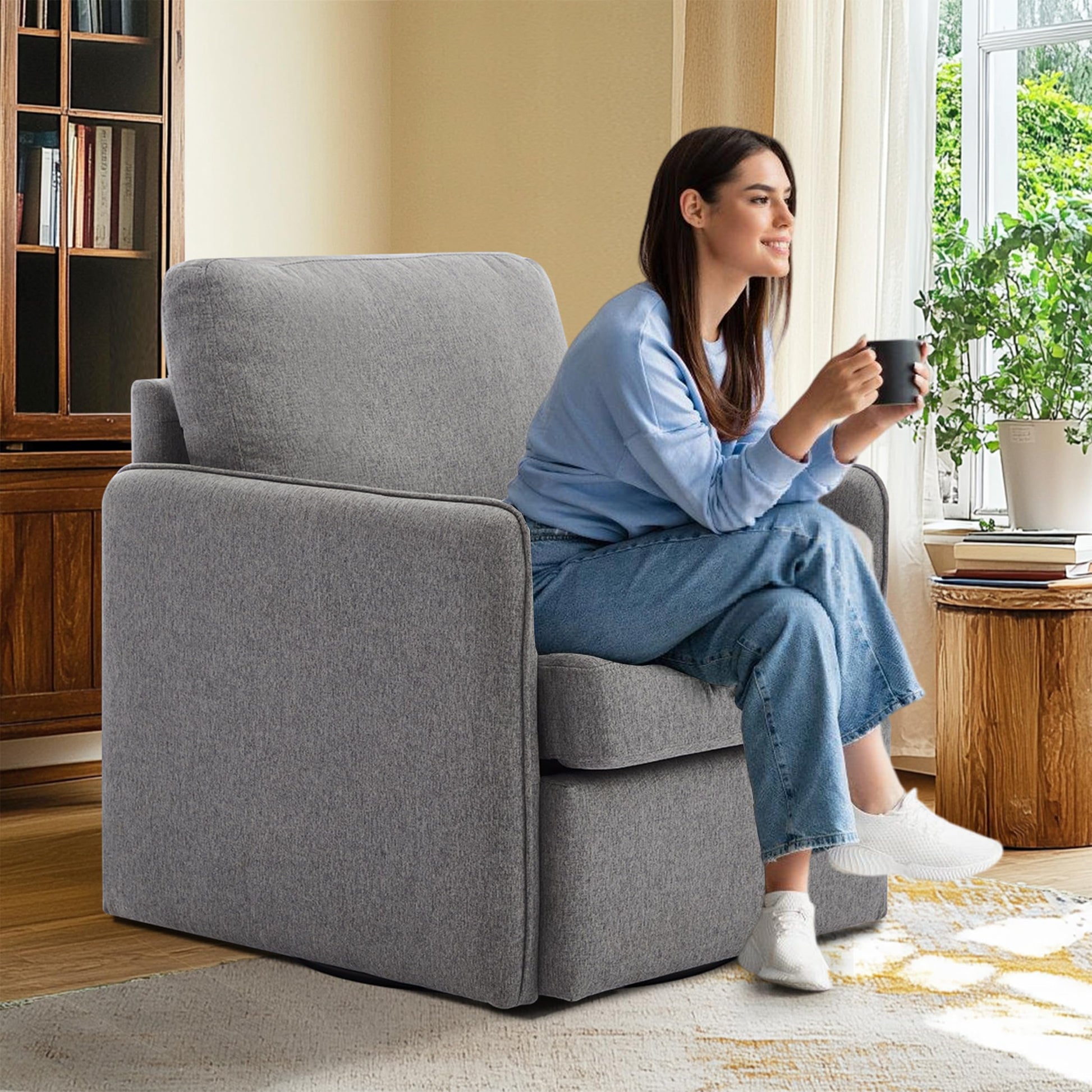 - 360-DEGREE SWIVEL: With a sturdy base that swivels 360 degrees, this accent chair enables you to adjust the direction and position of the chair at any time and effortlessly, increasing your comfort and flexibility so that you can communicate with friends, family or watch TV at any time.